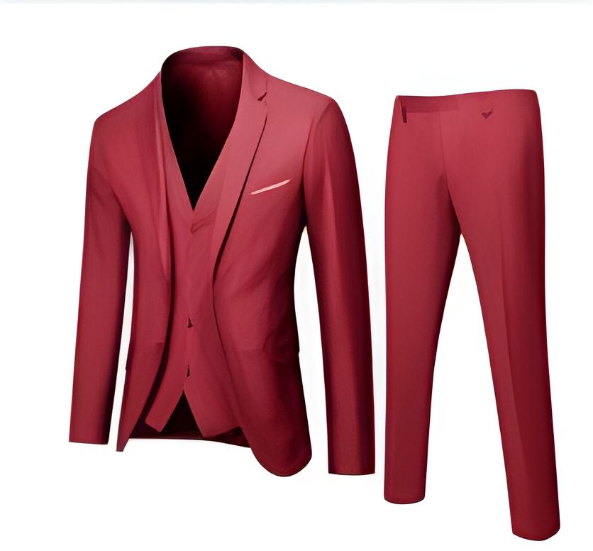• Zeitloses Gestaltung: Klassischer 3-teiliger Anzug mit Weste, Jacke und Hose, die Eleganz und Stil ausstrahlen.
