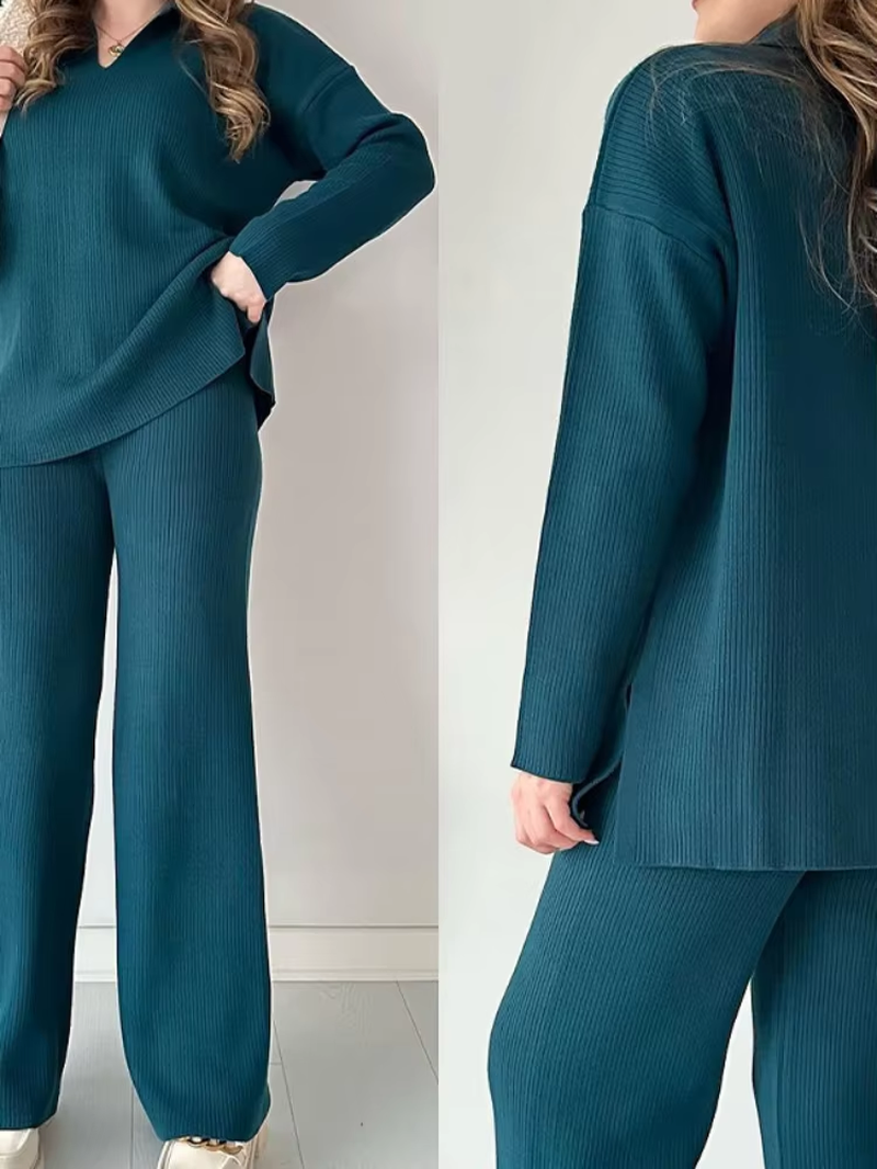 Werten Sie Ihre Freizeitgarderobe mit diesem bequemen zweiteiligen Set auf, das Komfort und Eleganz vereint. Perfekt für jeden Freizeitausflug oder semi-formellen Anlass: Das Hemd mit V-Ausschnitt und die Hose mit weitem Bein bieten Stil und Komfort in einem schicken Paket. Jetzt mit 50% Rabatt! 🎉