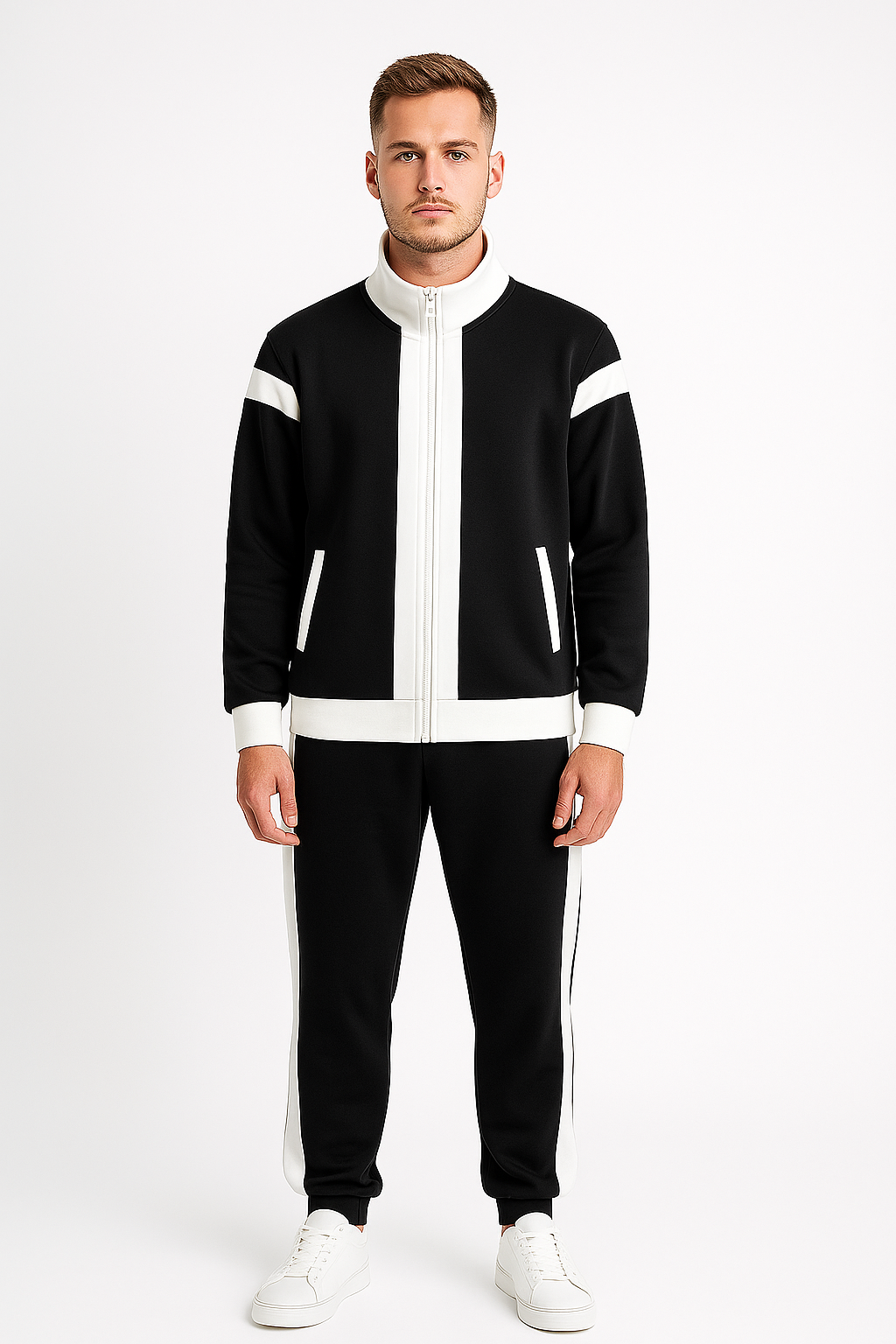 Dieser Trainingsanzug für Herren bietet eine perfekte Kombination aus Stil und Funktionalität. Hergestellt aus ultra-weichem, strukturiertem Maschenstrick, sorgt er für atmungsaktiven Komfort und ein ansprechendes Aussehen. Die scharfen Kontrastlinien verleihen dem Anzug einen sauberen und modernen Look, ideal für sportliche Aktivitäten oder entspannte Tage zu Hause.