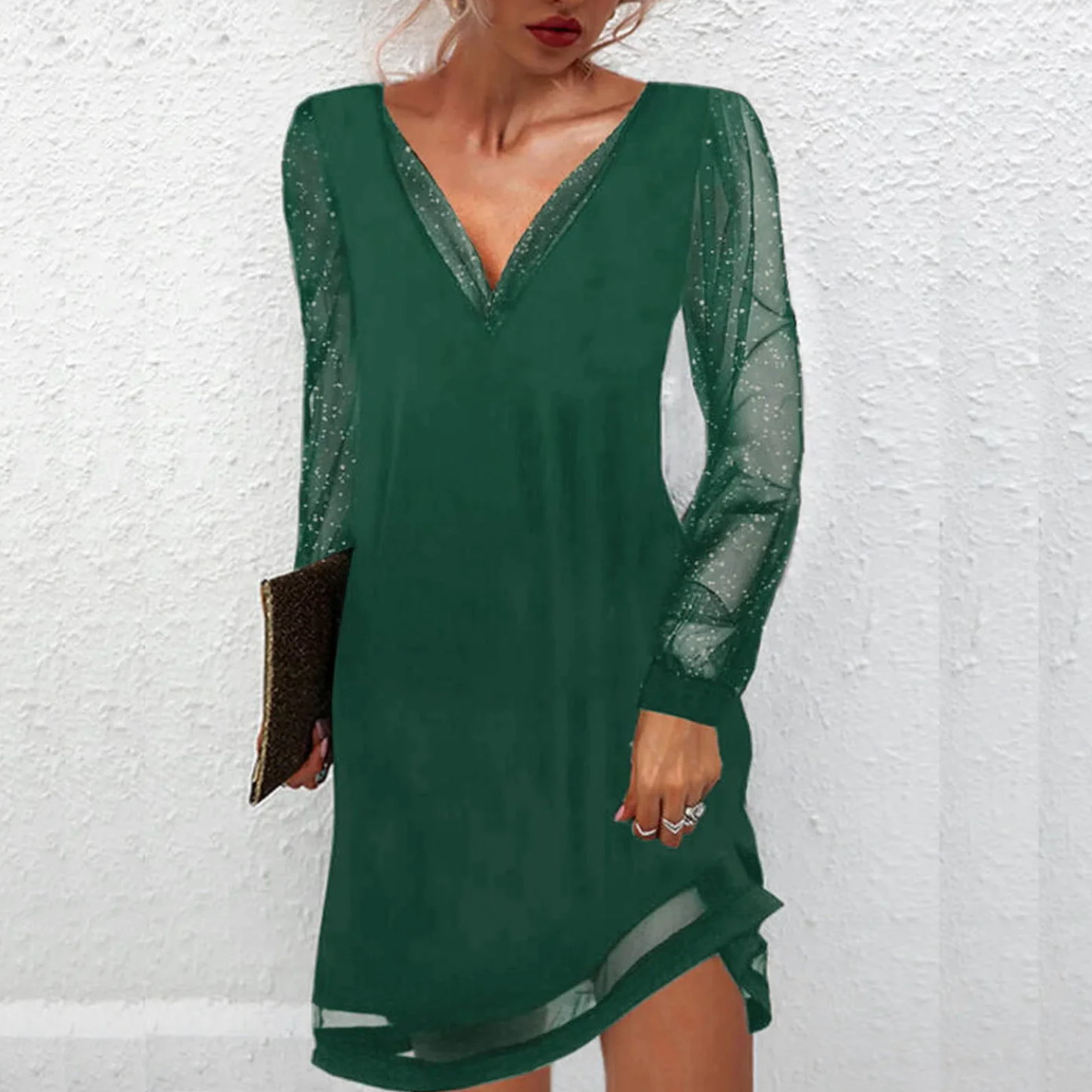 ✔ Funkelnder Abendzauber: Die glitzernden Ärmel verleihen einen Hauch von Glamour und erhellen Ihren Abend mit einem bezaubernden Glanz.
