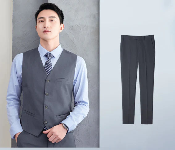Definieren Sie formelle Kleidung neu mit diesem modernen Hochzeitsgastanzug – einem Zweiteiler, der subtile Eleganz ausstrahlt. Die elegante Kombination aus Weste und passender Hose verleiht dem stilbewussten Gentleman von heute mühelose Klasse. Ob Sie eine Hochzeit besuchen, geschäftlich netzwerken oder einen eleganten Abend genießen – dieser Anzug verleiht Ihnen einen gepflegten und selbstbewussten Auftritt.