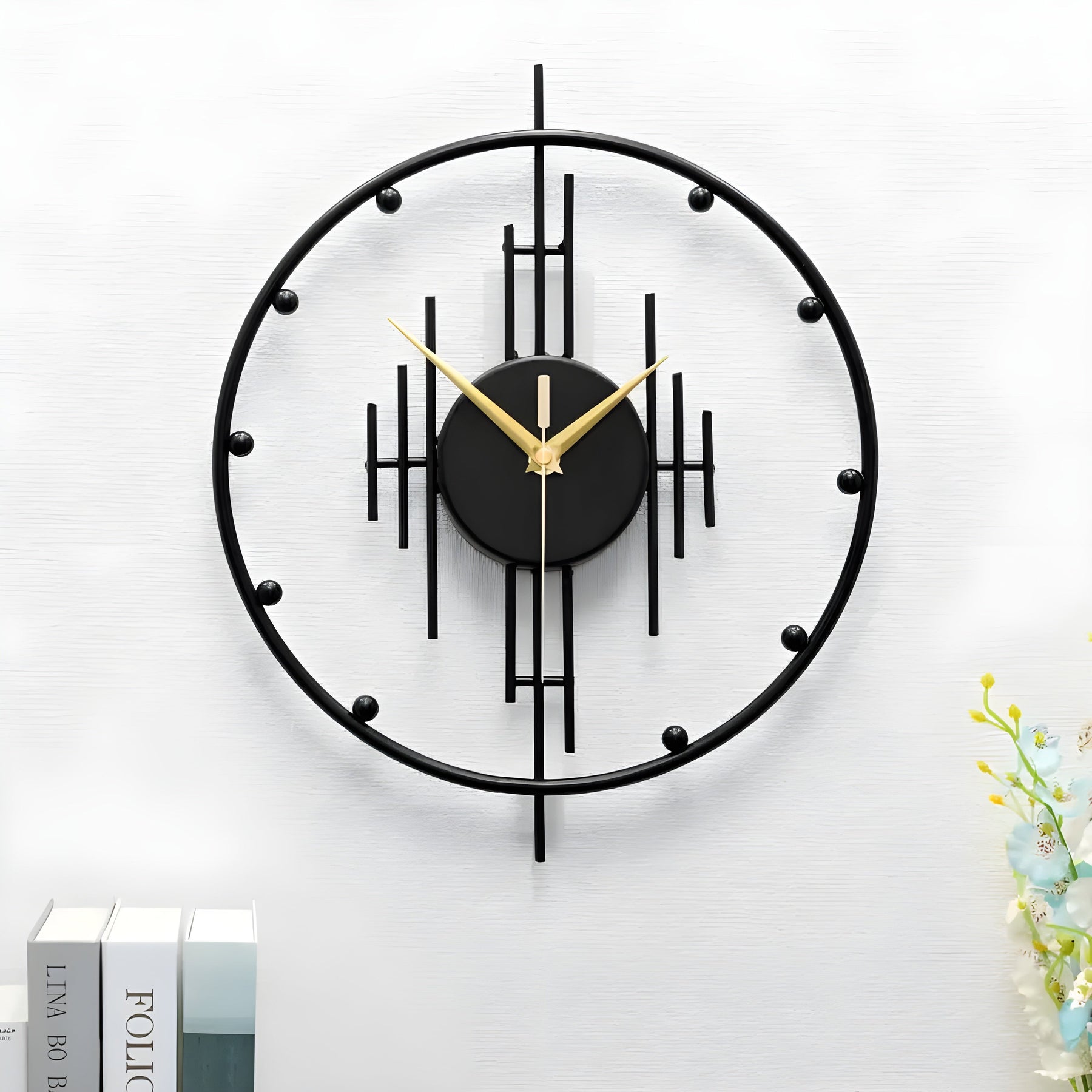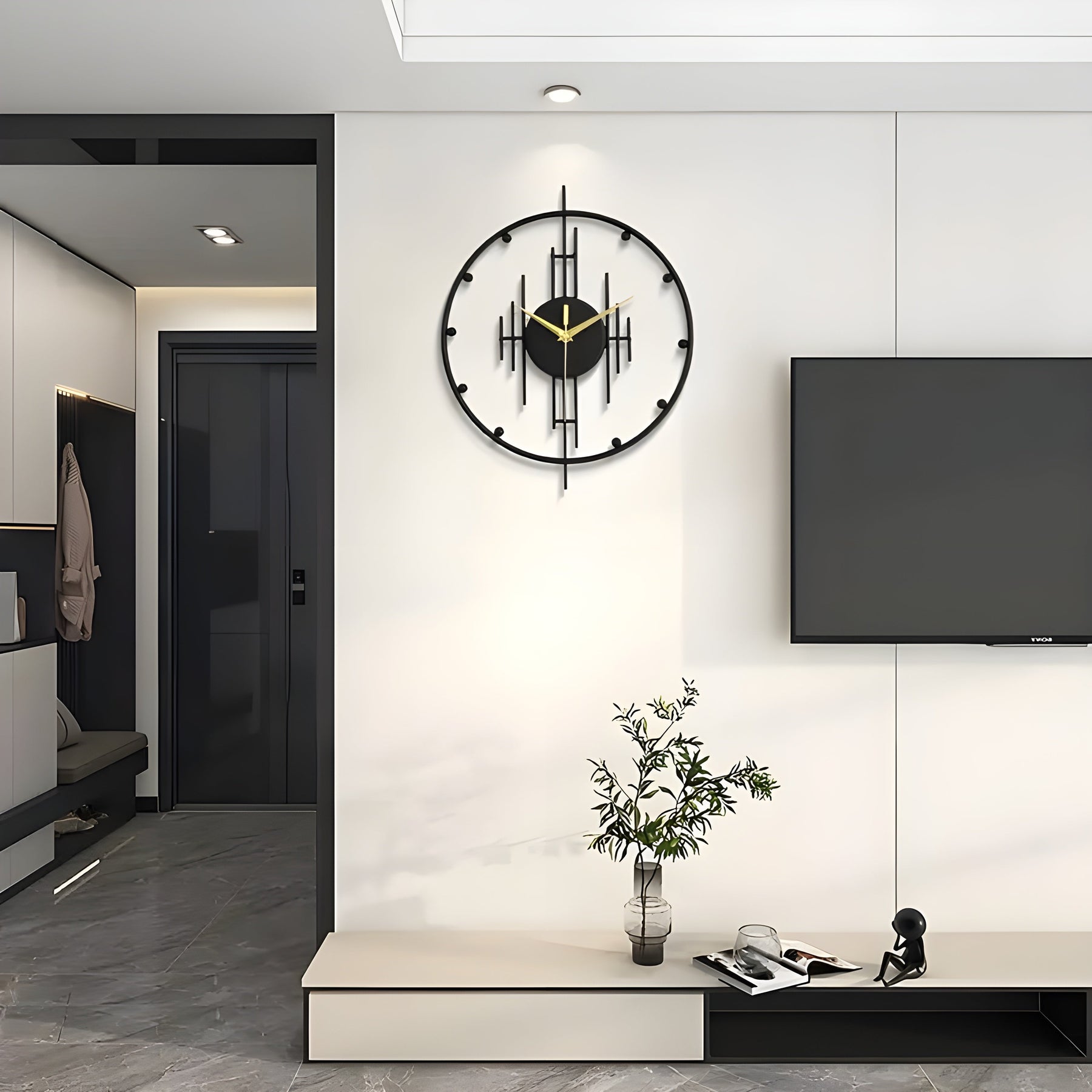 Mit ihrem minimalistischen Metallrahmen fügt sich die Uhr perfekt in jedes moderne Interieur ein. -