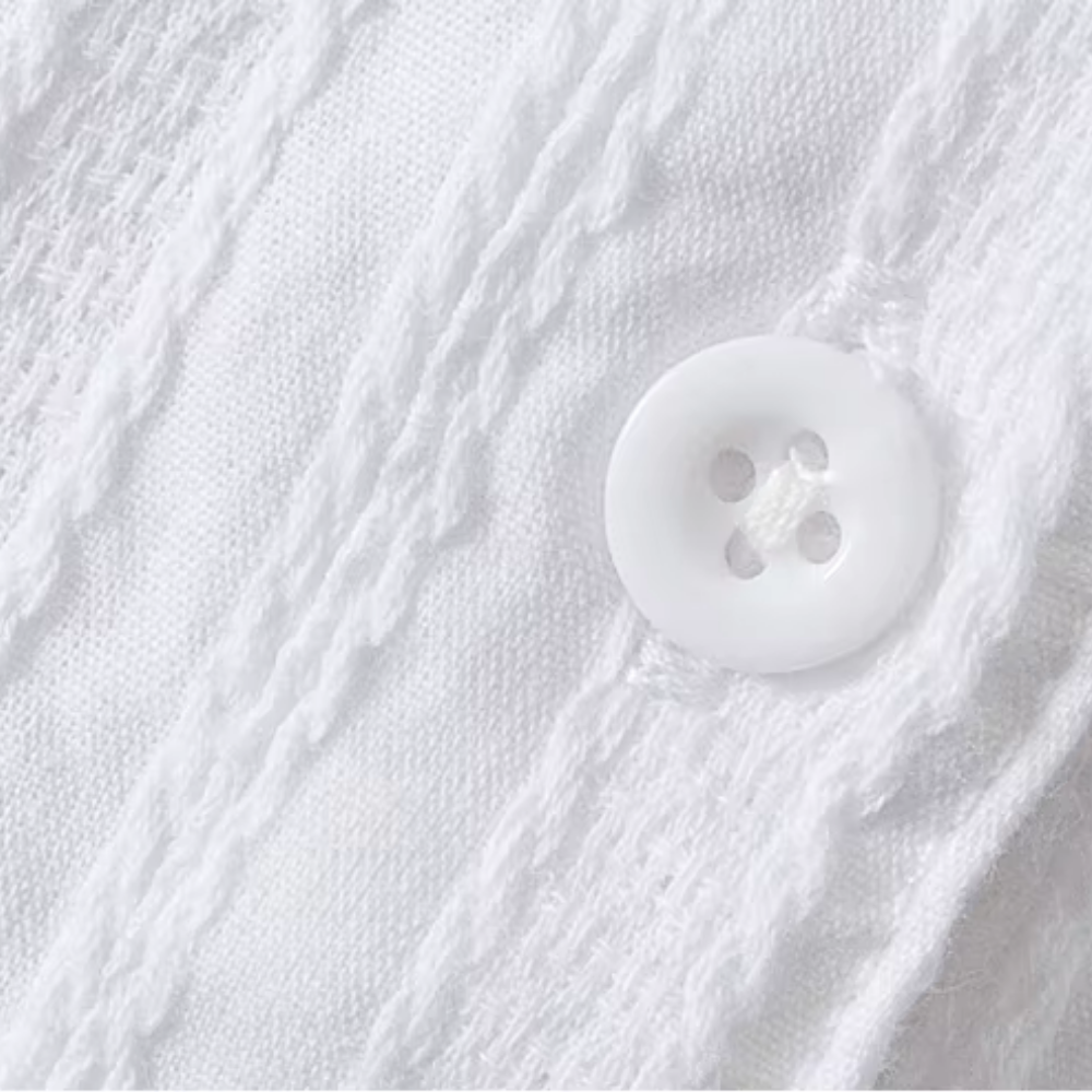 Nivela ist das perfekte Oberteil für sonnige Tage und entspannte Eleganz. Diese weiße Bluse mit V-Ausschnitt kombiniert schlichte Raffinesse mit einem lockeren Schnitt – ideal für Casual-Looks mit Klasse.