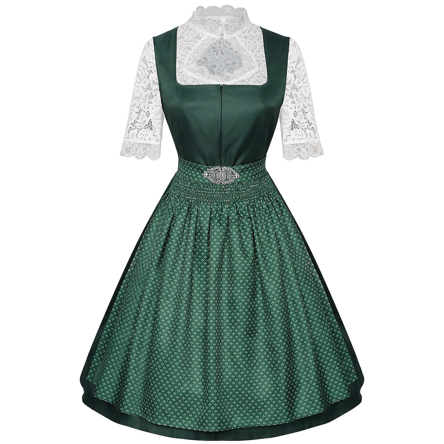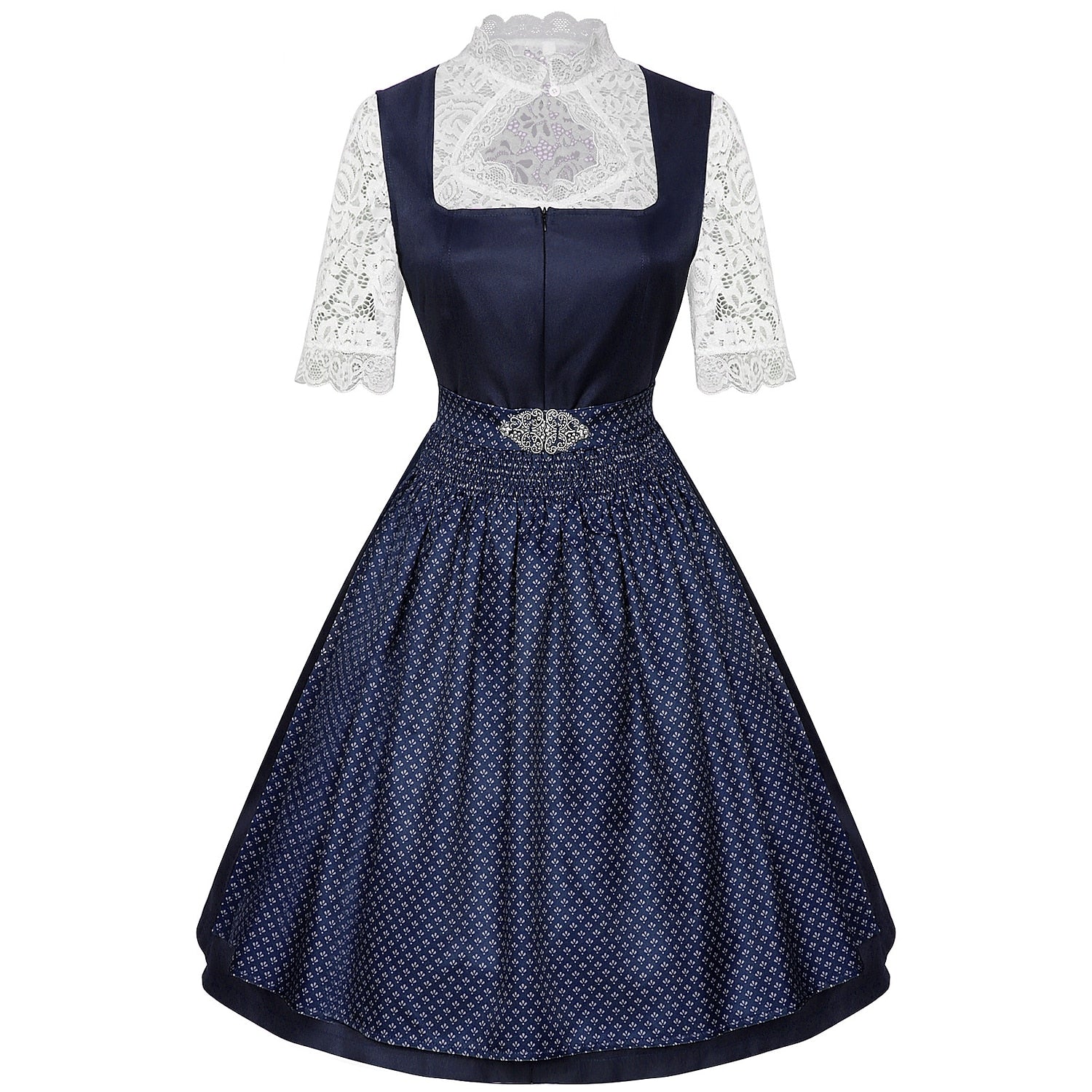 Oktoberfest Bavarian Dirndl Dress with Apron and Lace Blouse