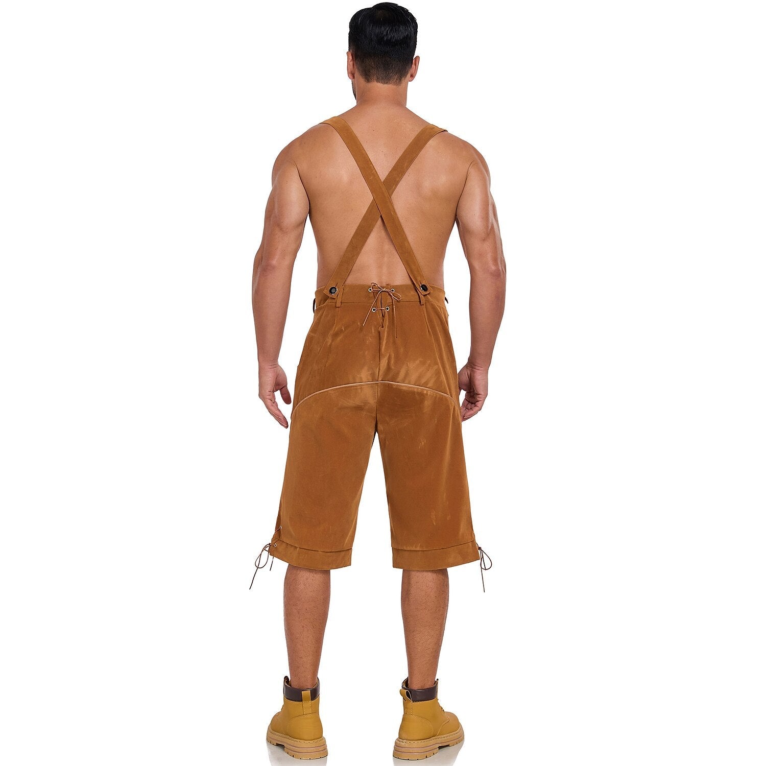 Oktoberfest Men’s Bavarian Yellow Embroidered Lederhosen