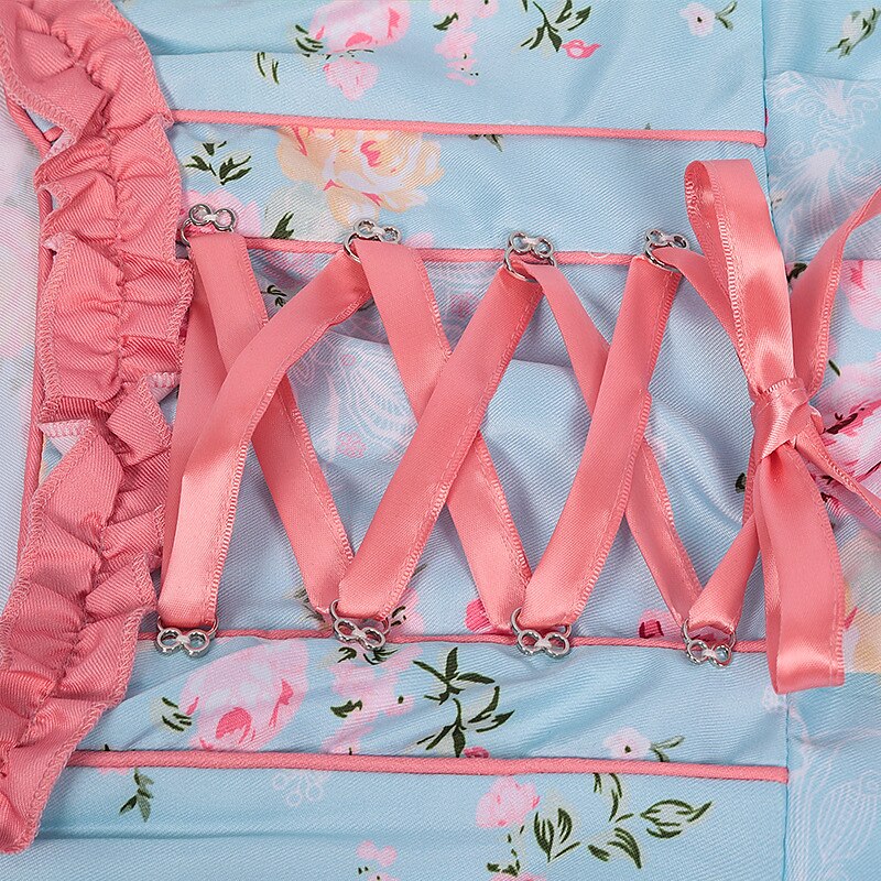 Oktoberfest Pink Floral Dirndl Dress with Apron and Blouse