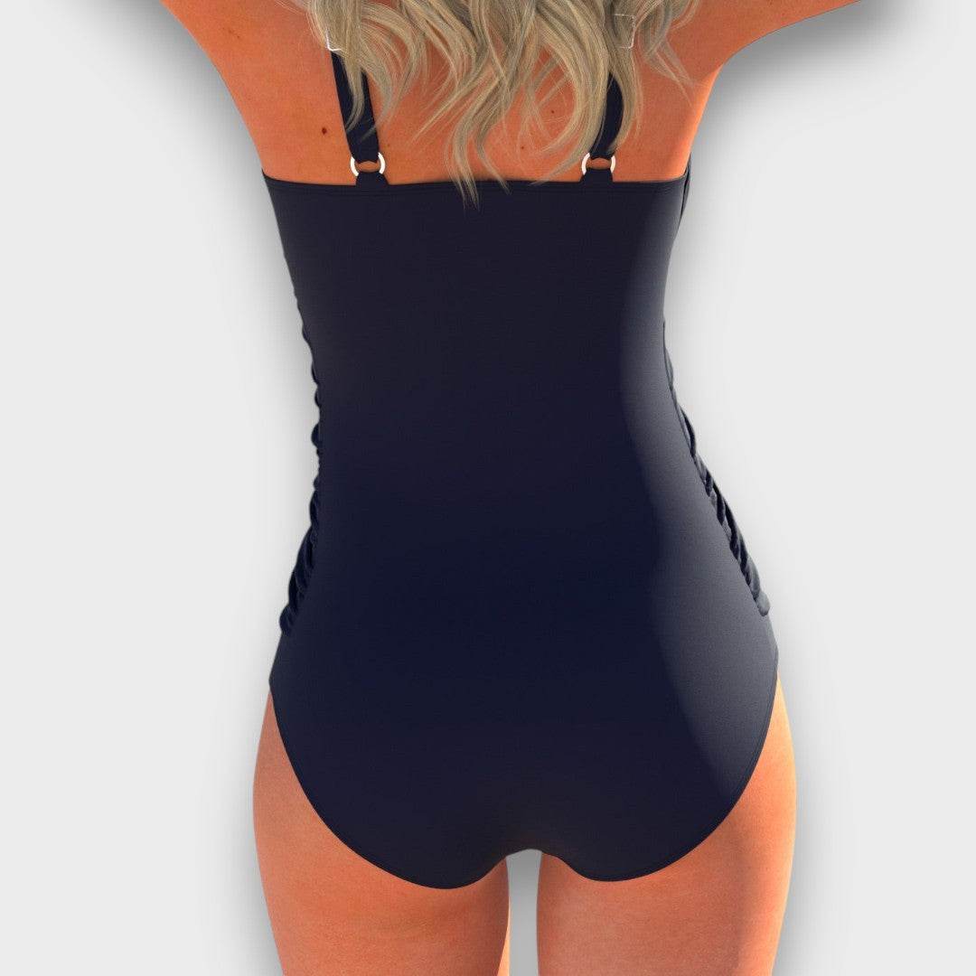 Olympe ist eine Hommage an weibliche Leichtigkeit – ein Badeanzug, der Eleganz spürbar macht. Die zarten Raffungen, der gekreuzte Ausschnitt und die sanfte Linienführung formen eine Silhouette, die nicht nur den Körper umschmeichelt, sondern auch das Gefühl von Sicherheit und Schönheit schenkt. Für Tage, an denen du dich leicht und ganz bei dir fühlen willst – unabhängig vom Ort.