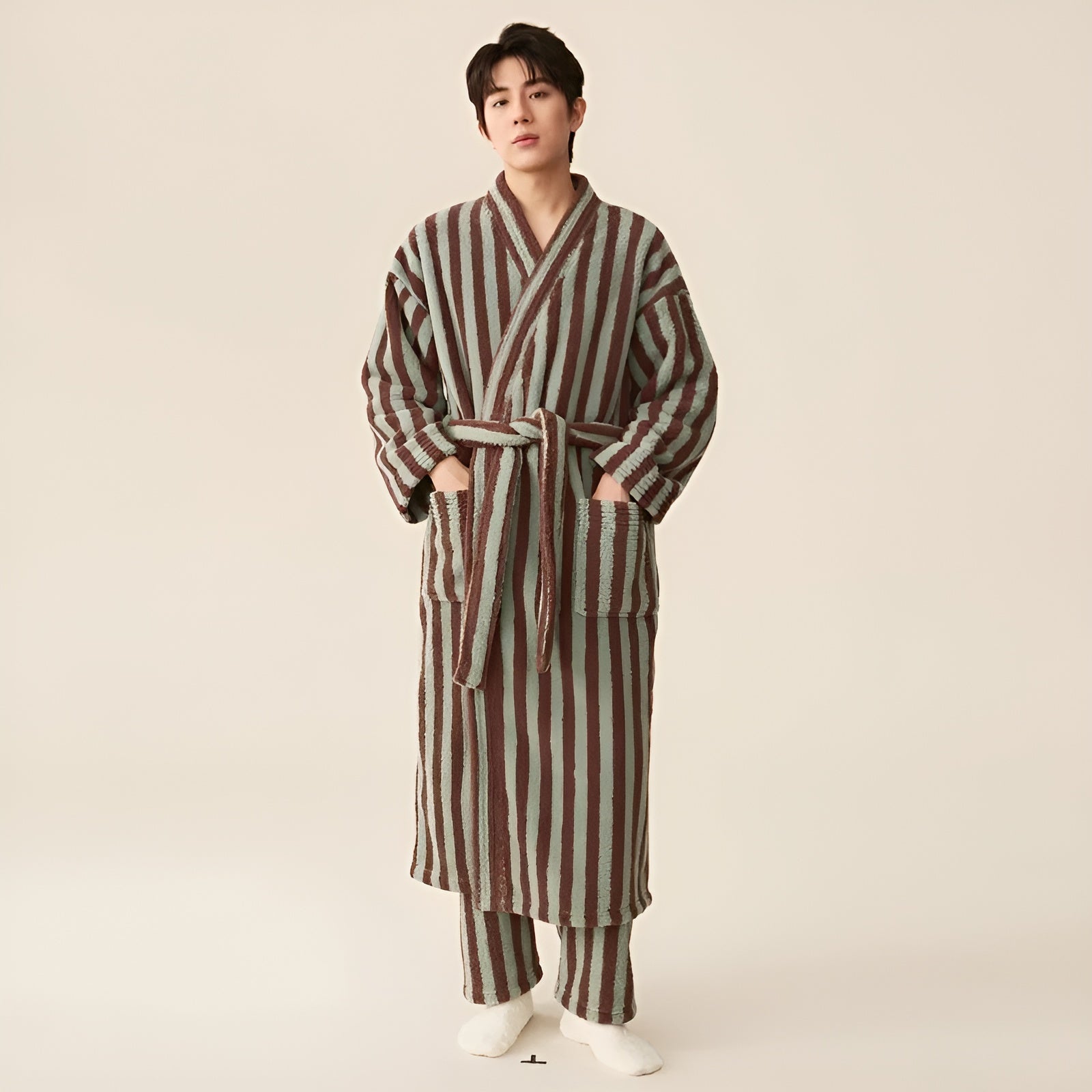 PlushWrap Robe - Winter Gestreift Robe Pyjama Set für Paare