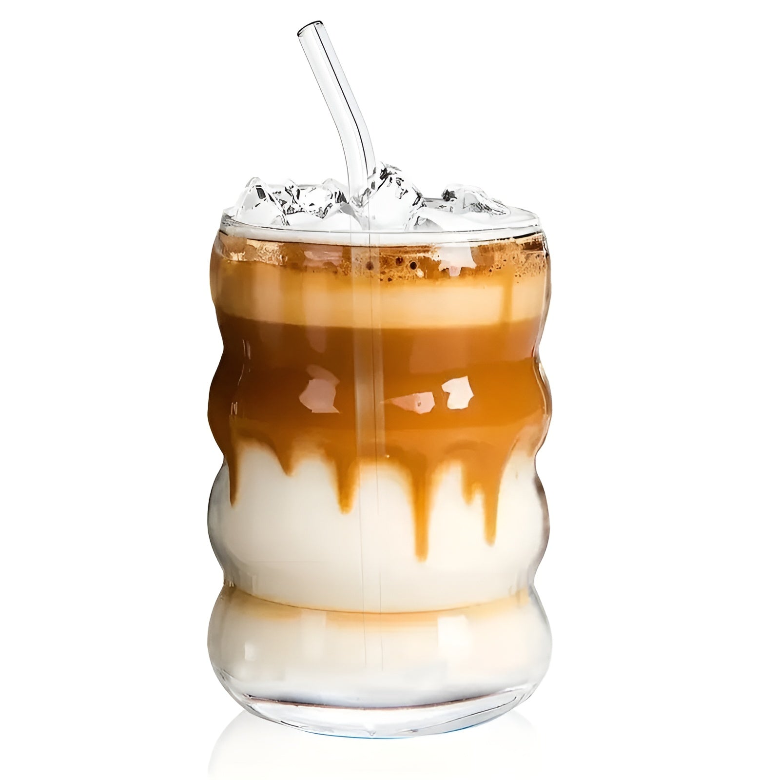Dieses stilvolle Rippenglas mit Wellenform ist mehr als nur ein einfaches Trinkgefäß – es ist ein echter Hingucker auf jedem Tisch! Perfekt geeignet für Eiskaffee, Matcha, Säfte oder Cocktails, überzeugt es durch sein modernes Design und die praktische Wiederverwendbarkeit. Ob als Geschenk oder für den eigenen Genuss – dieses Glas sorgt für das gewisse Etwas bei jedem Schluck.