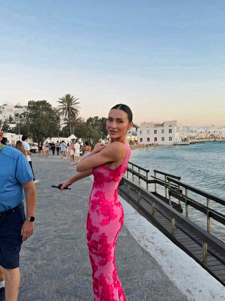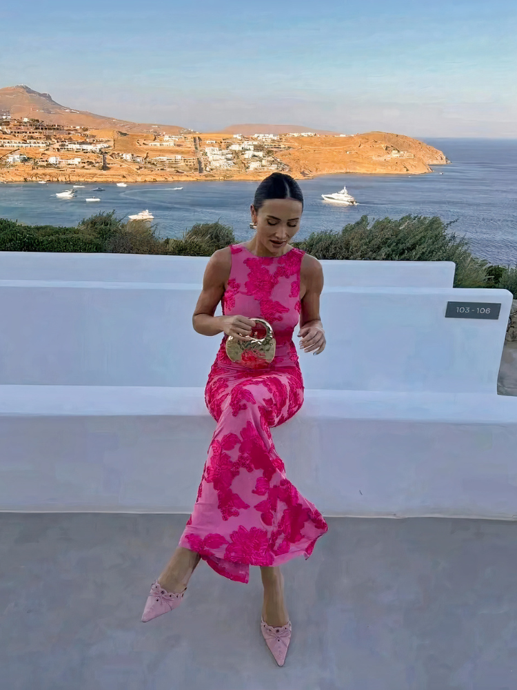 Rosa geblümtes Damen Bodycon Abendkleid | Maxi