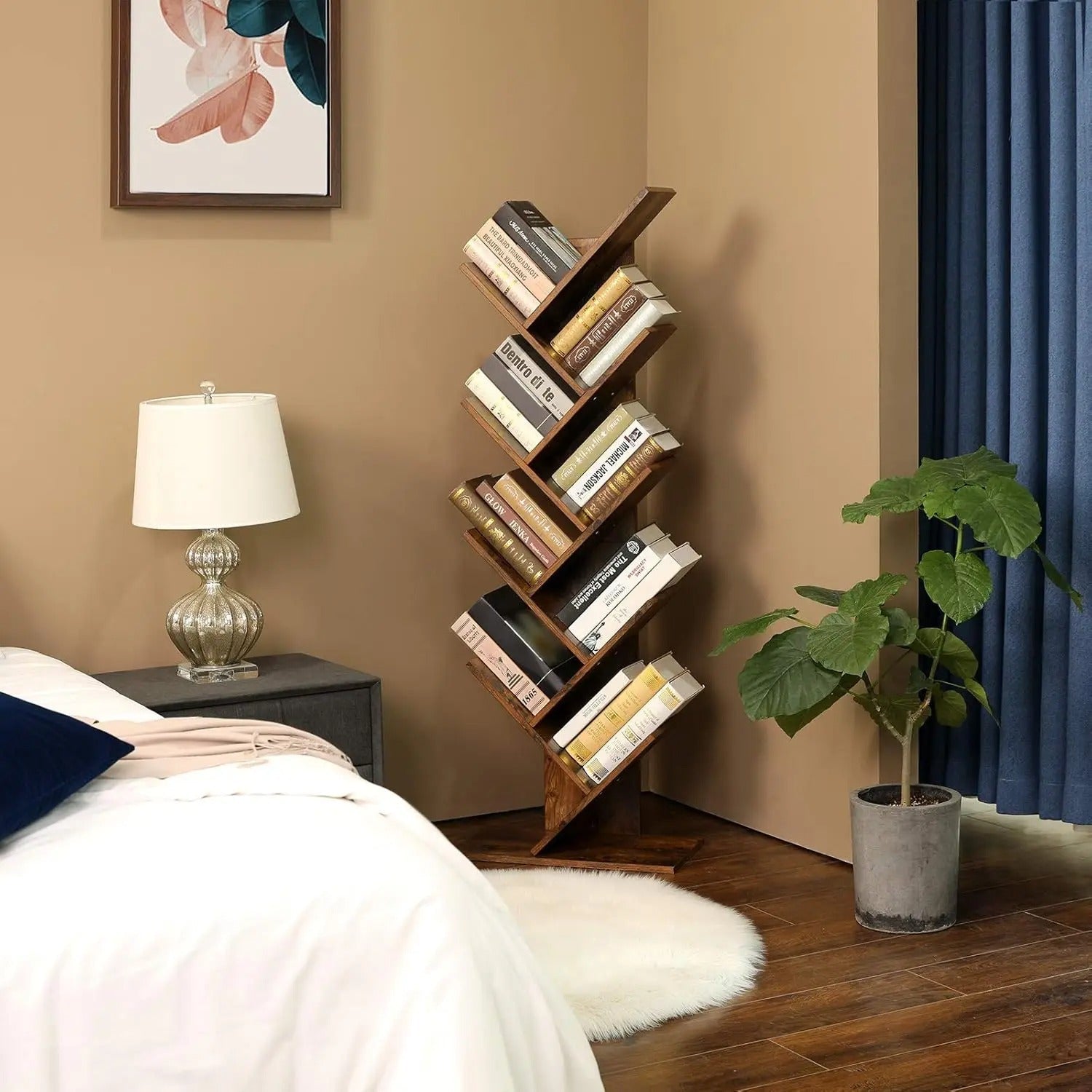 RusticBranch Rack - 8-Stöckiges Holz Bücherregal