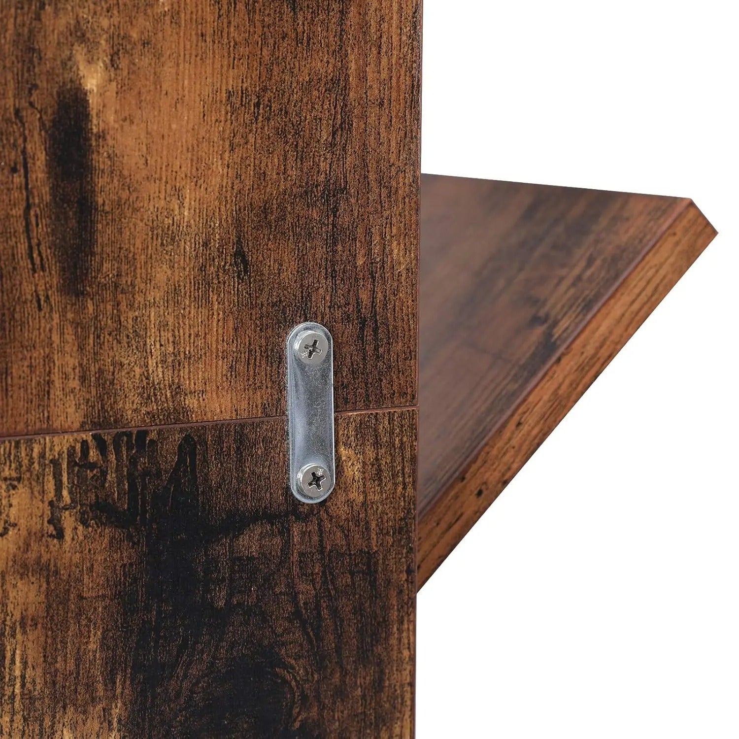 Neben diesen Vorteilen verfügt das Regal über abgerundete Ecken, die das Verletzungsrisiko minimieren, und ein Anti-Kipp-Kit, das für zusätzliche Sicherheit sorgt. Die rustikale braune Farbe fügt sich nahtlos in verschiedene Einrichtungsstile ein und macht das Regal zu einem echten Hingucker in Ihrem Zuhause.