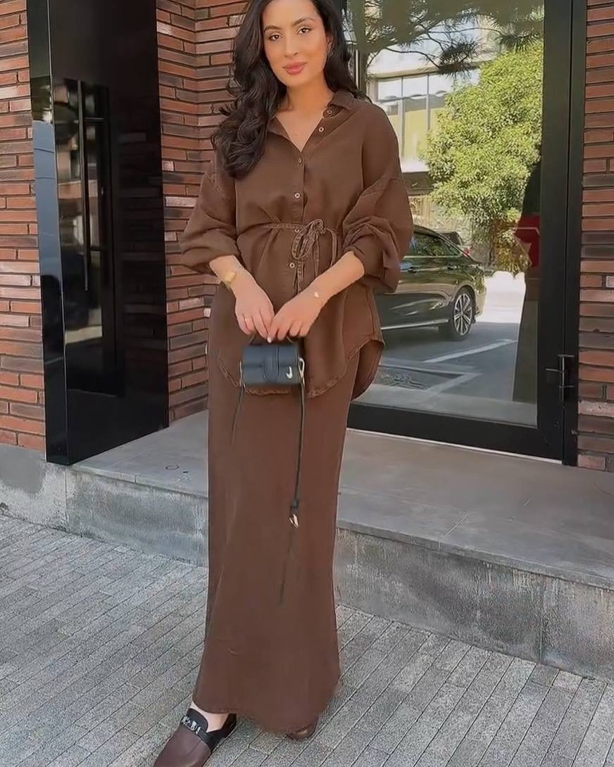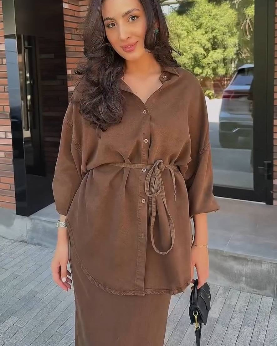 Sandra ist ein stilvolles Set aus fließender Bluse und passendem Rock, das durch seine klare Linienführung und edle Ausstrahlung überzeugt. Ob für das Büro, den Stadtbummel oder besondere Momente – dieses Zweiteiler Set schenkt Ihnen einen Look, der immer gepflegt und modern wirkt.