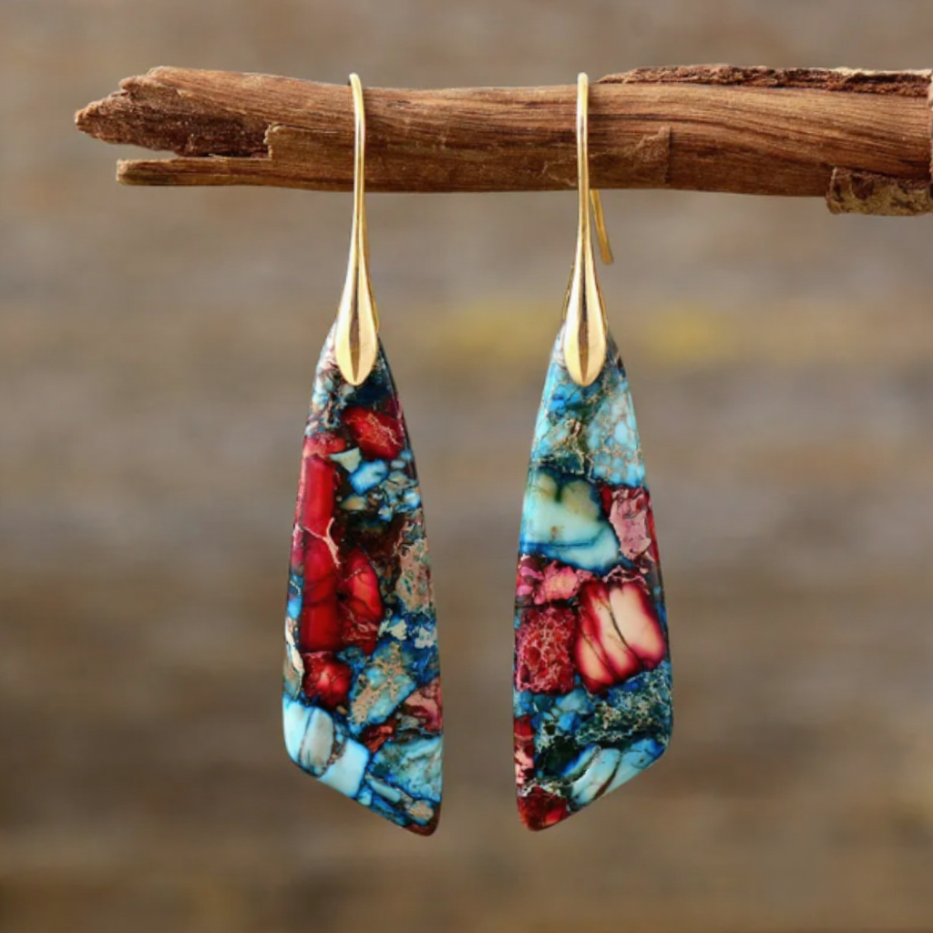 Farben wie gemalt, Formen wie geschnitzt – diese Ohrringe sind tragbare Kunstwerke mit wilder Seele und sinnlichem Schwung.