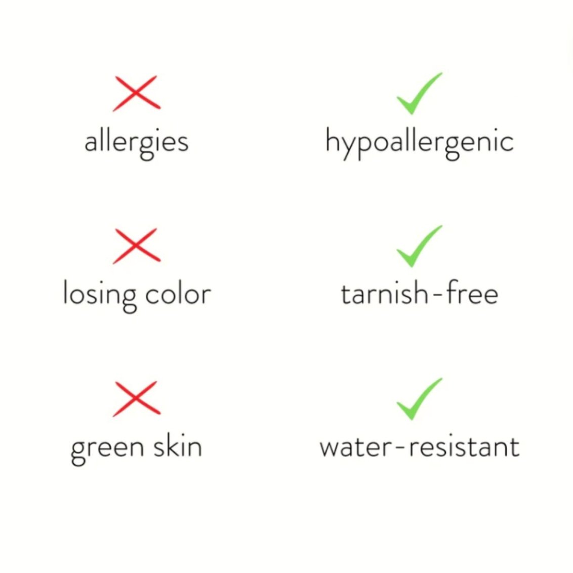 Hergestellt aus wasserdichtem Edelstahl, müssen Sie sich nie wieder Sorgen über das Verblassen oder Anlaufen von Schmuck machen.