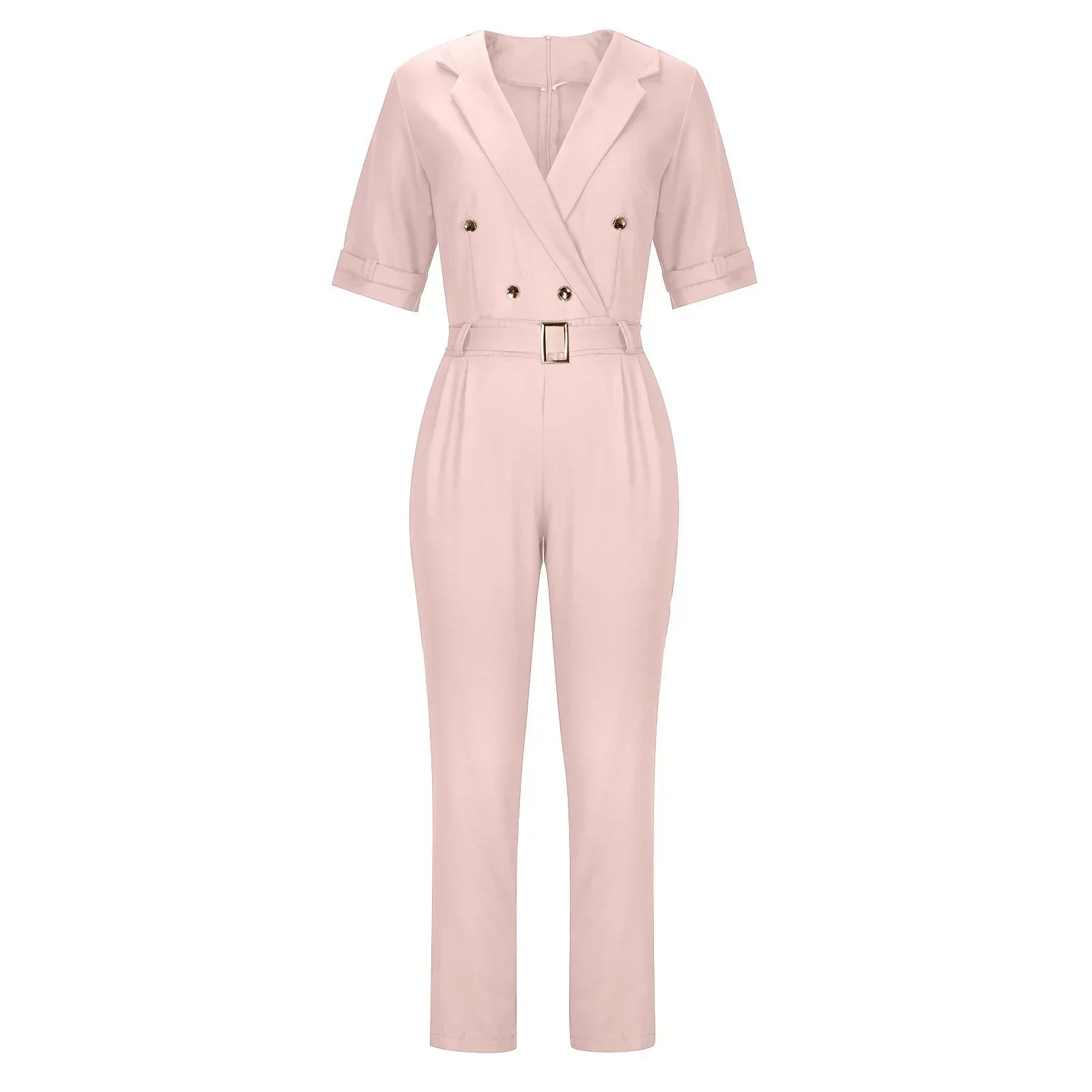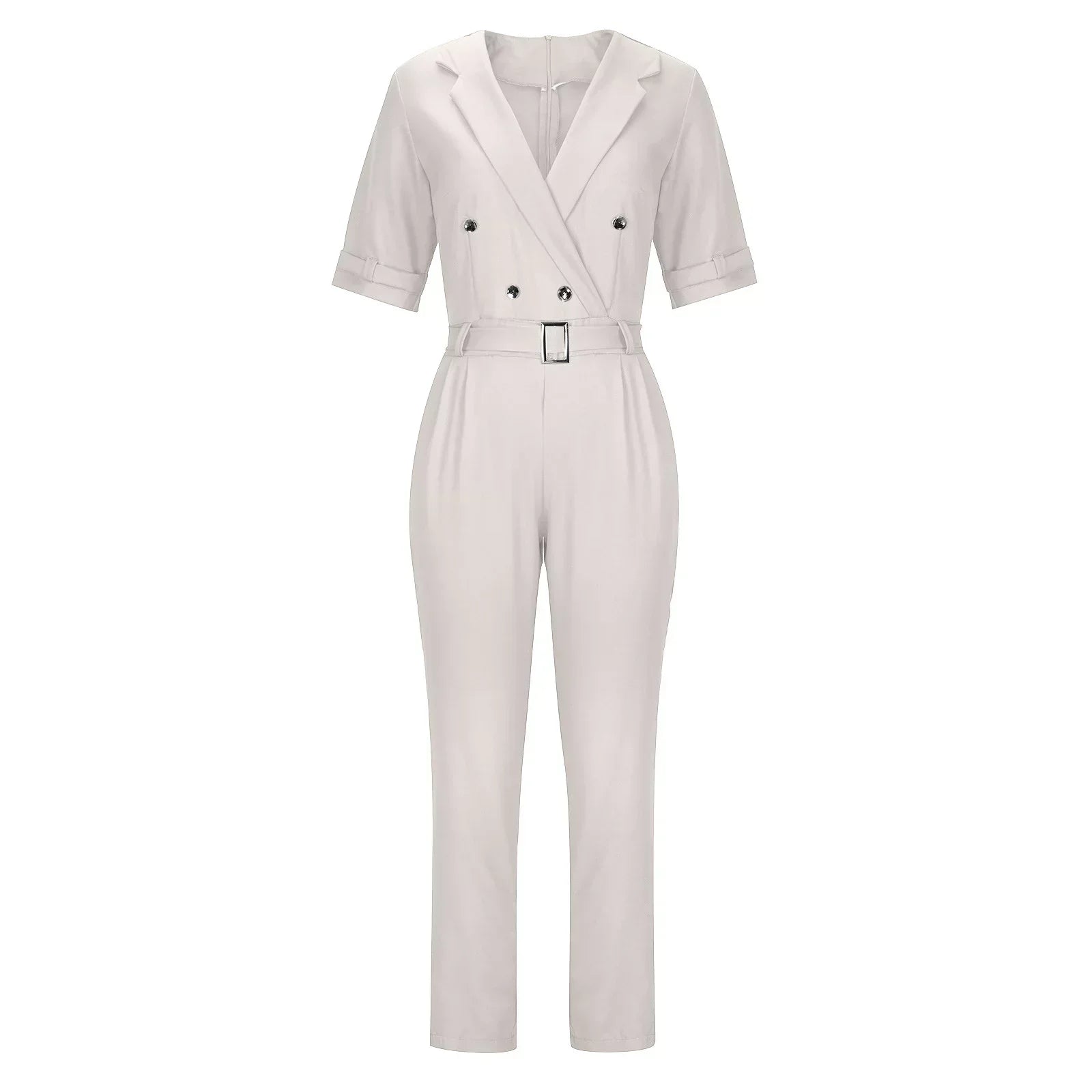 Erhöhen Sie Ihre Garderobe mit diesem stilvollen Damen Overall, der durch sein raffiniertes Doppelbrust-Wrap-Design und den eleganten V-Ausschnitt besticht. Die kurzen Ärmel und der Gürtel in der Taille sorgen für eine schmeichelhafte Silhouette, die sowohl für das Büro als auch für Abendveranstaltungen geeignet ist. Der Overall vereint Komfort und Eleganz und ist ein Must-Have für jede modebewusste Frau.