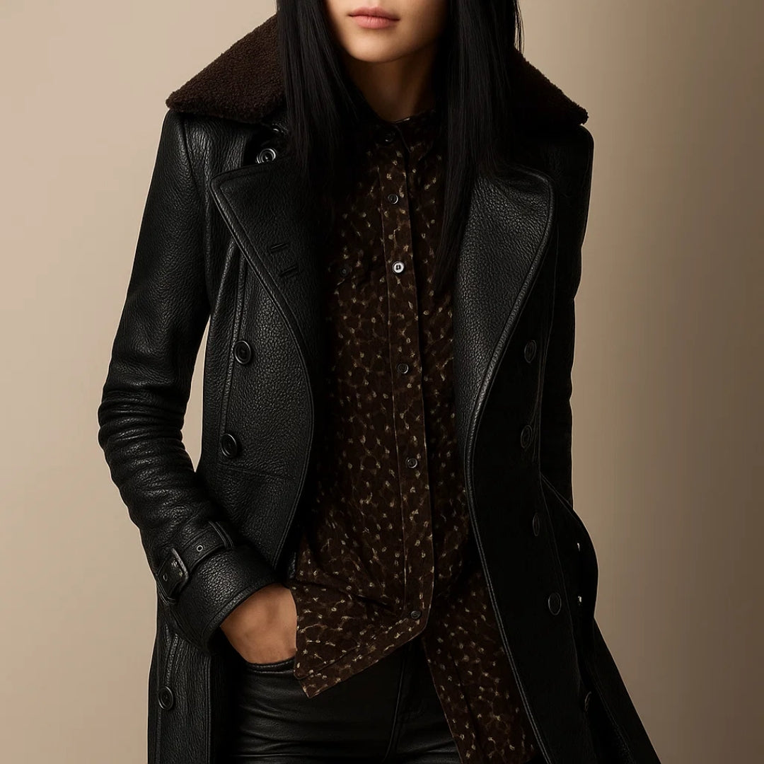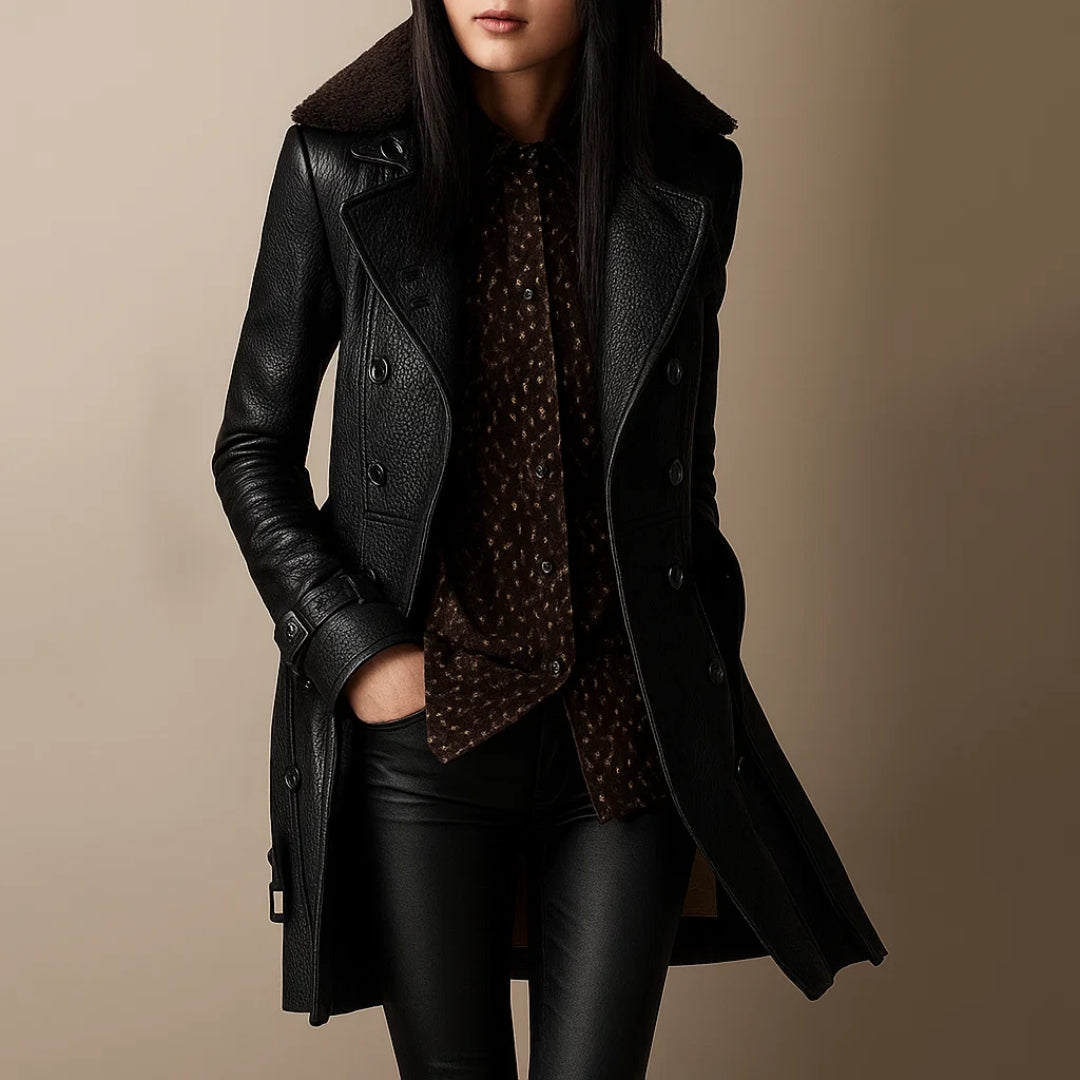 Simone™ | Eleganter mittellanger Leder-Mantel