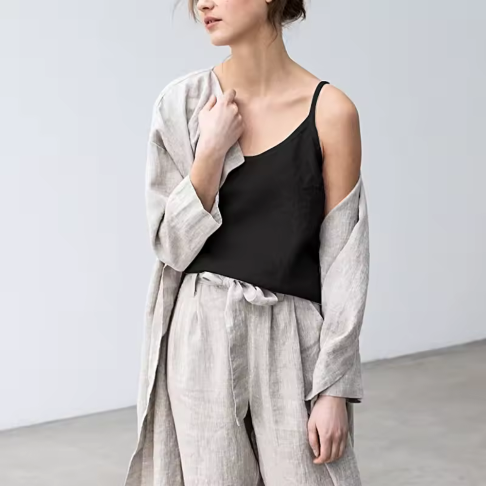 Unsere Produkte sind aus hochwertigen Materialien wie Baumwolle, Seide und Leinen gefertigt. Um die Qualität und Langlebigkeit dieser edlen Stoffe zu bewahren, empfehlen wir, sie bei maximal 30 Grad in der Waschmaschine zu waschen. So bleibt Ihre Kleidung lange schön und fühlt sich immer angenehm auf der Haut an.