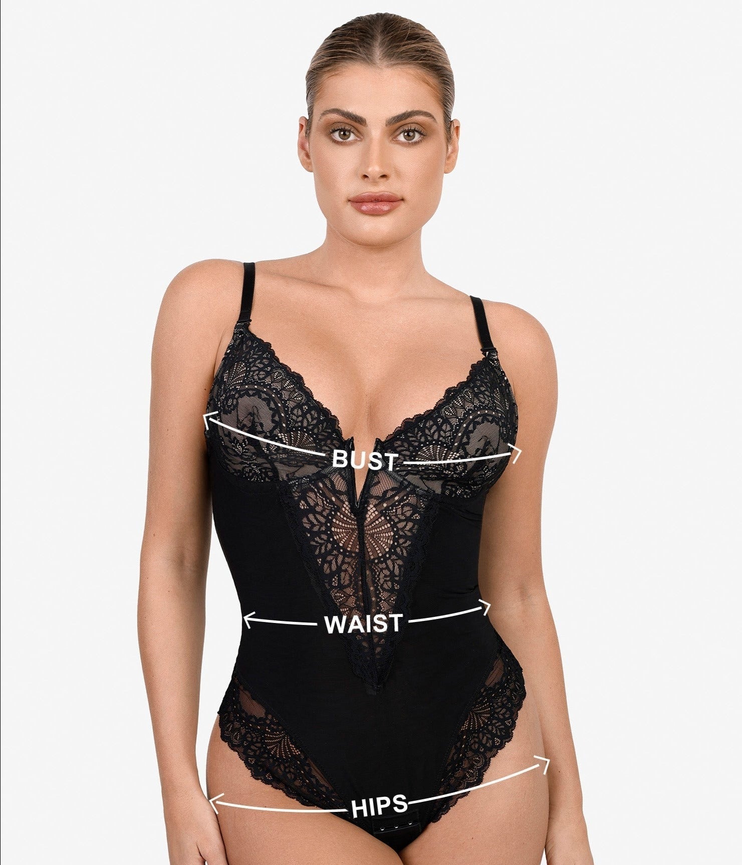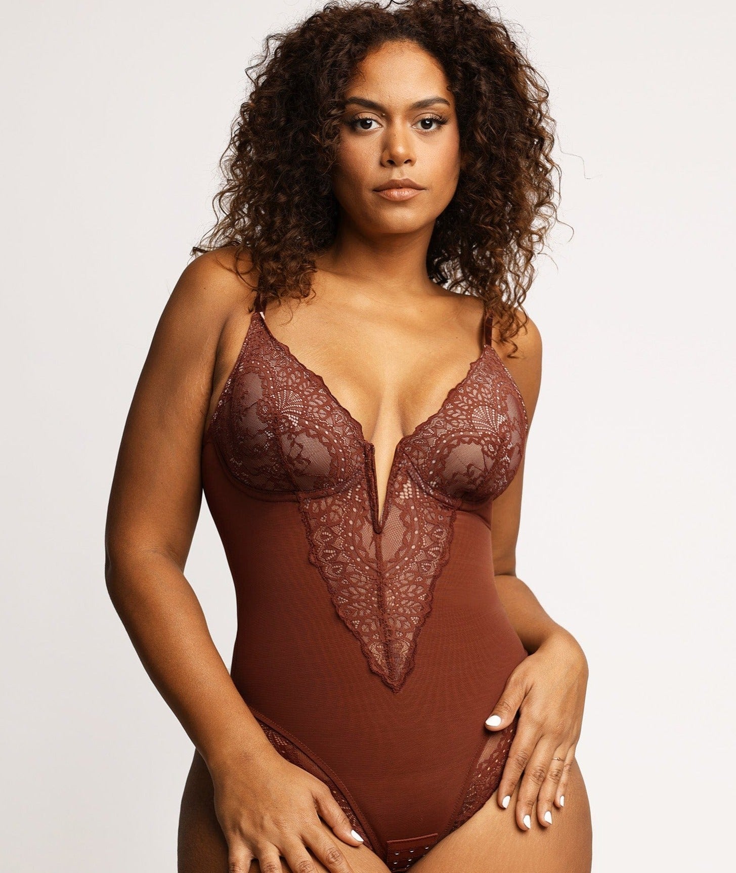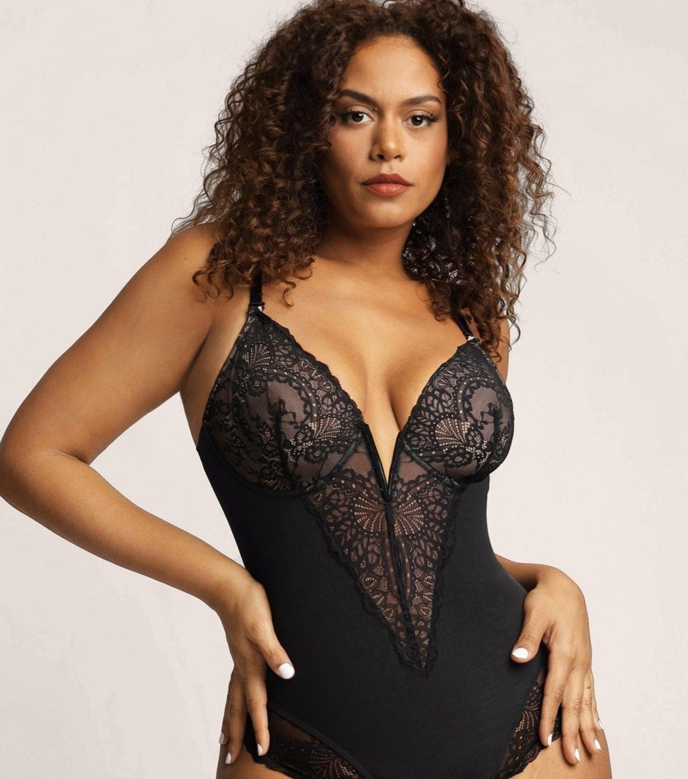 Warum Frauen den tiefen V-Ausschnitt aus Spitze so sehr lieben Bodysuit