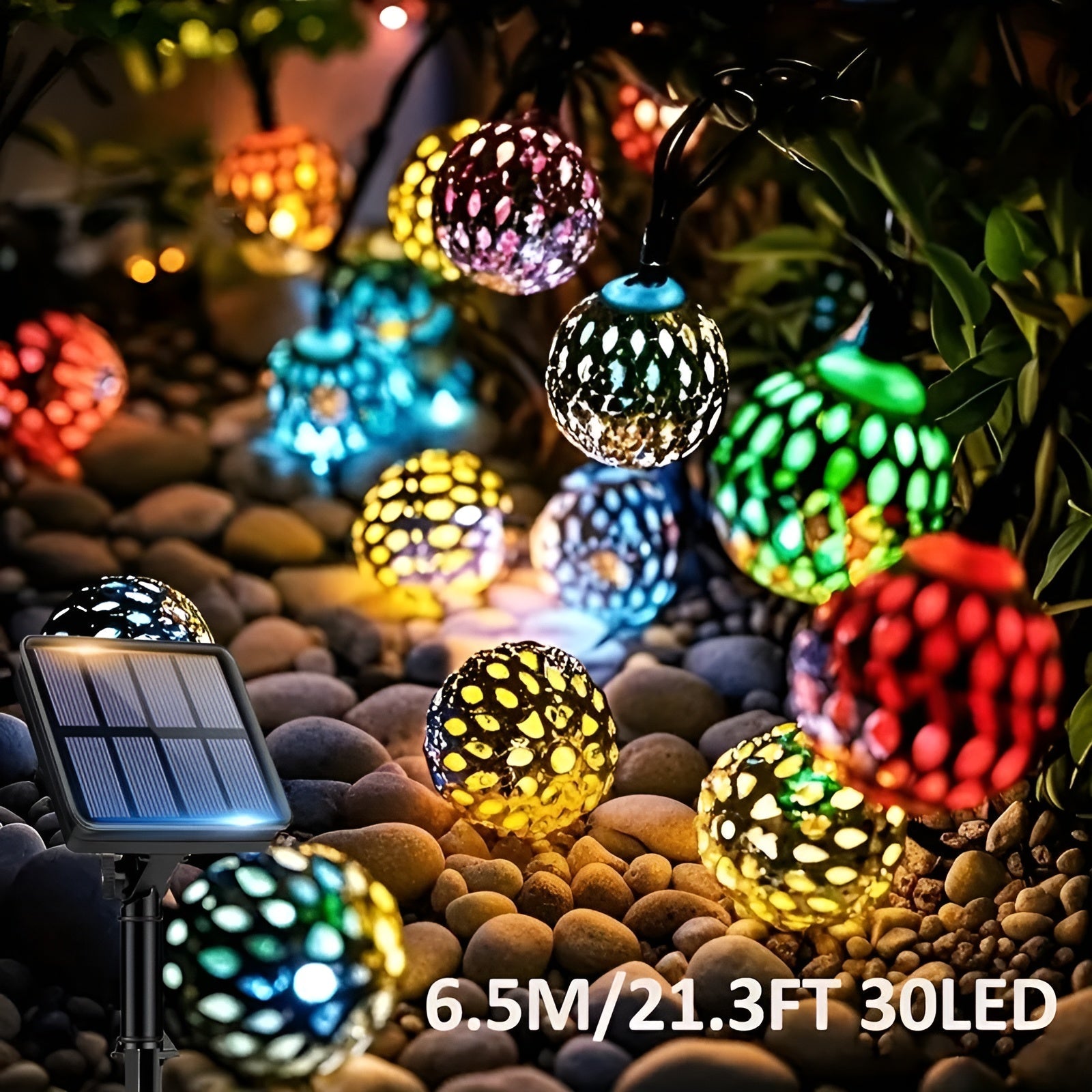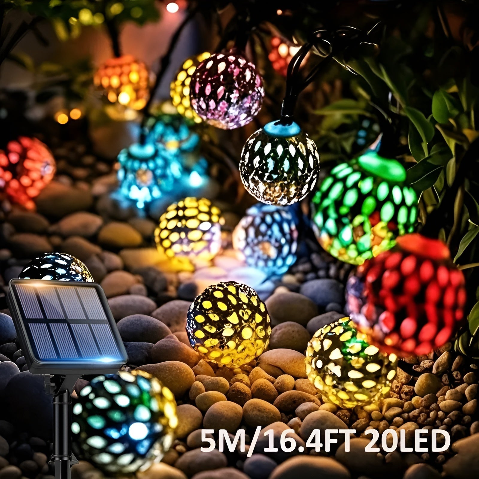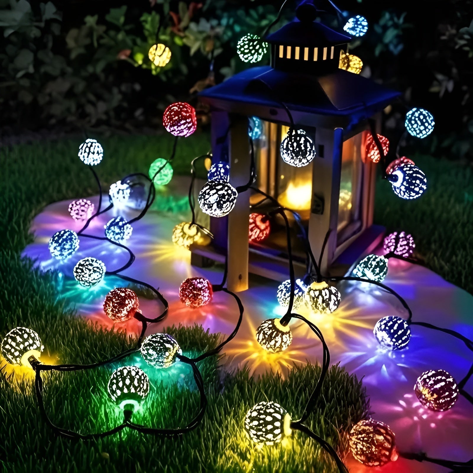 Solarkugelleuchten im marokkanischen Stil – Bunte LED-Lichterkette für Garten & Balkon