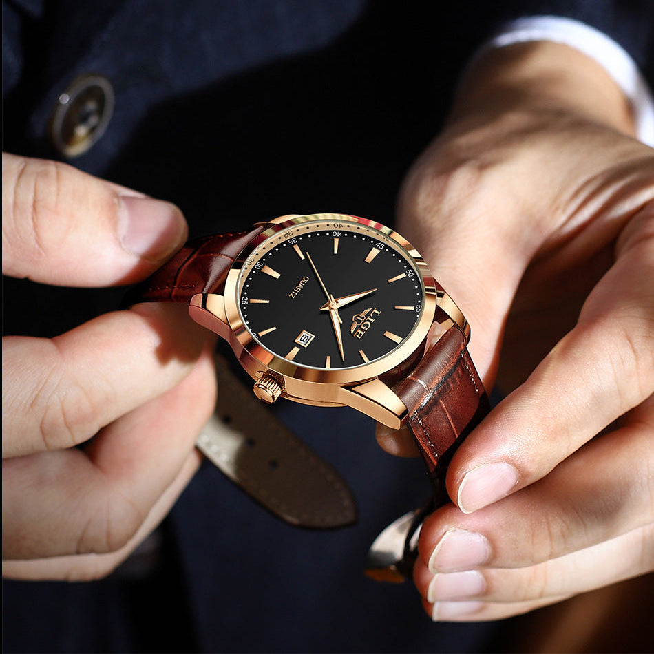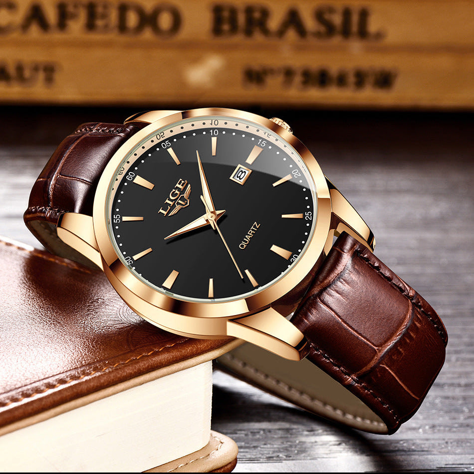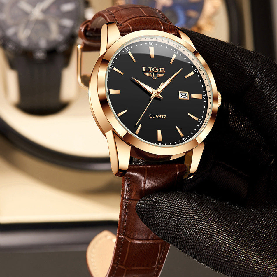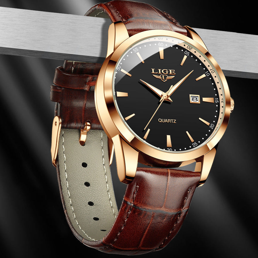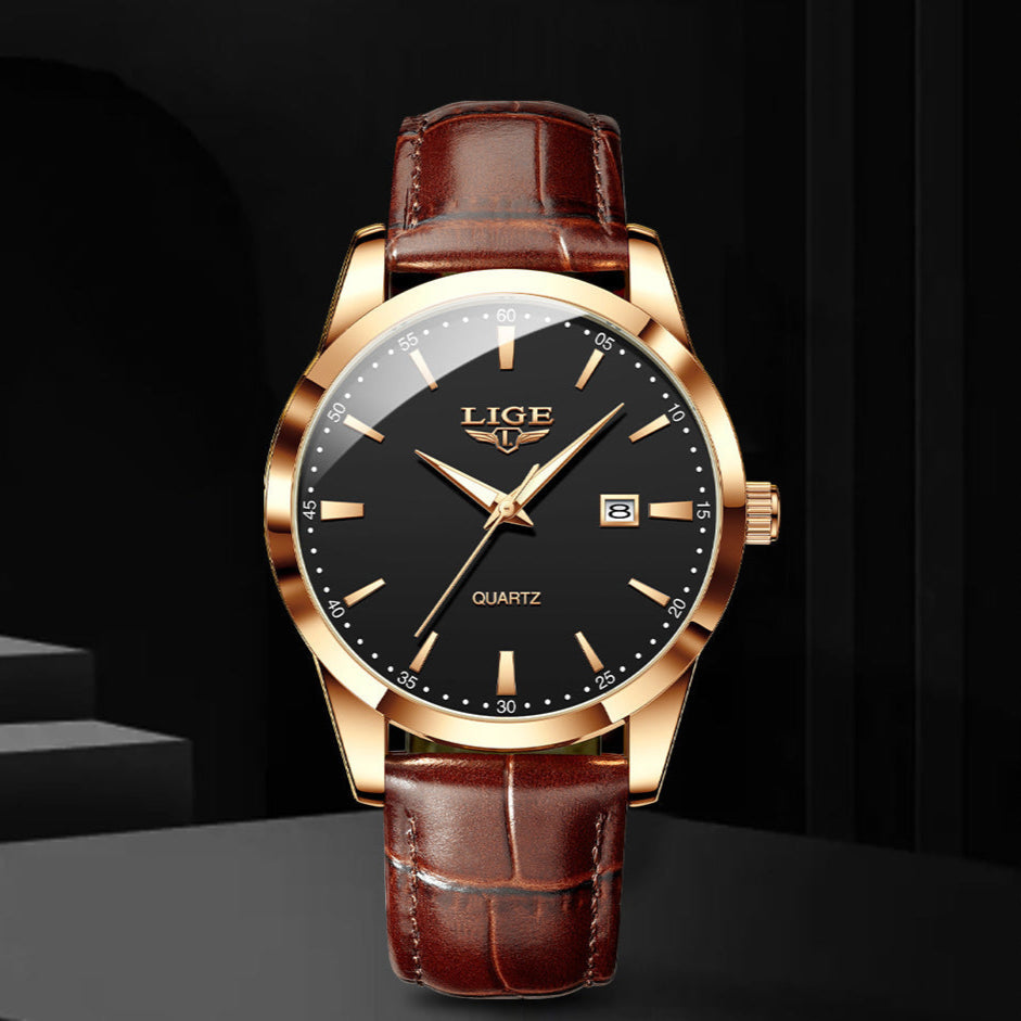 Die Valerian ist die ideale Wahl für Männer, die sowohl Stil als auch Leistungsfähigkeit schätzen. Mit ihrem militärisch inspirierten Design und einem robusten Echtlederarmband bietet sie höchsten Tragekomfort und Widerstandsfähigkeit für den täglichen Gebrauch. Dank der Wasserbeständigkeit hält diese Uhr jedem Wetter und jeder Aktivität stand, während die leuchtenden Zeiger und Markierungen eine einfache Ablesbarkeit auch bei schlechten Lichtverhältnissen gewährleisten. Das präzise Quarzwerk sorgt dafür, dass Sie immer pünktlich bleiben – ob im Büro oder auf einem Outdoor-Abenteuer.