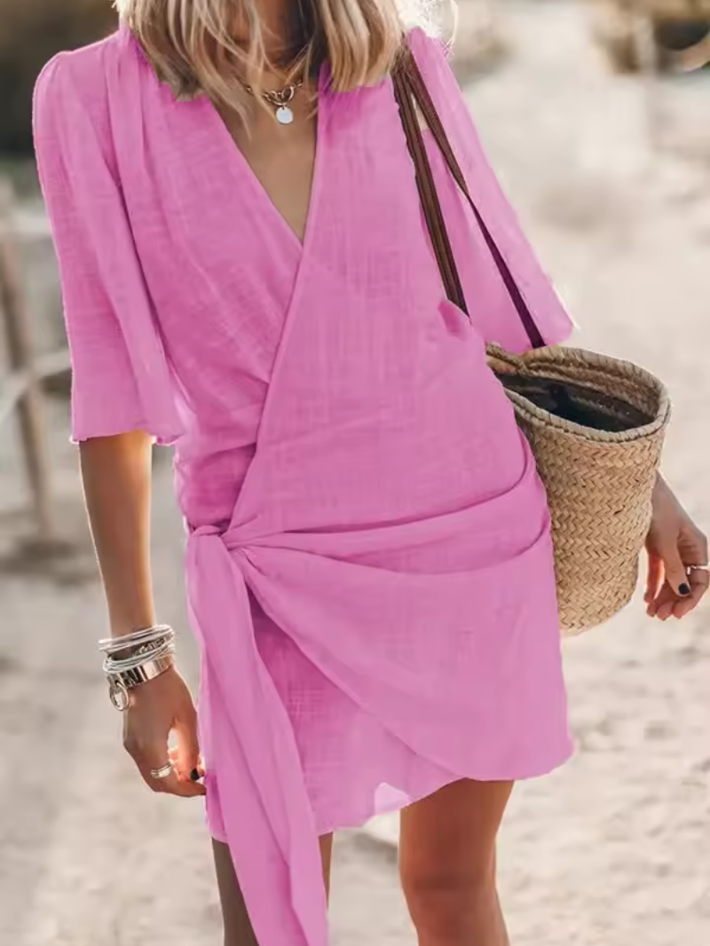 Valessia – Das frühlings-sommerkleid mit v-ausschnitt und wickeloptik