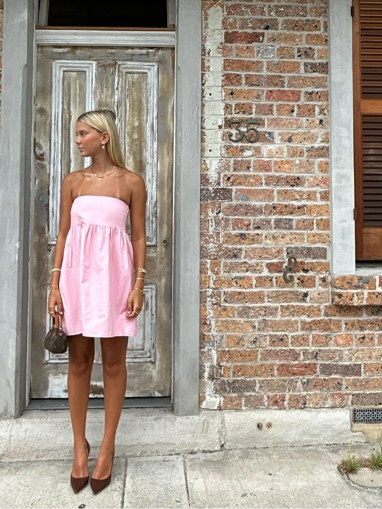 Treten Sie ins Rampenlicht mit dem Venice Dress, einem atemberaubenden trägerlosen Minikleid, das Ihre Eleganz und Ihr Selbstbewusstsein unterstreicht. Perfekt für die High Street Fashion und die Partyszene, kombiniert dieses Kleid moderne Trends mit zeitlosem Charme