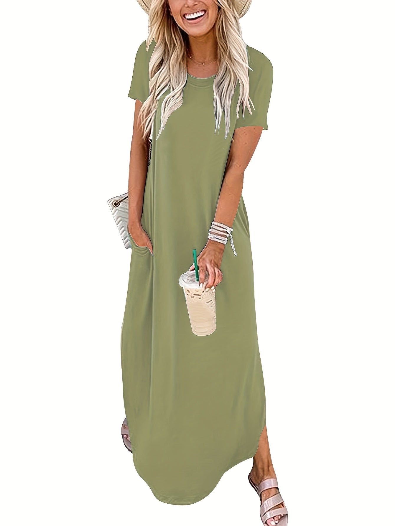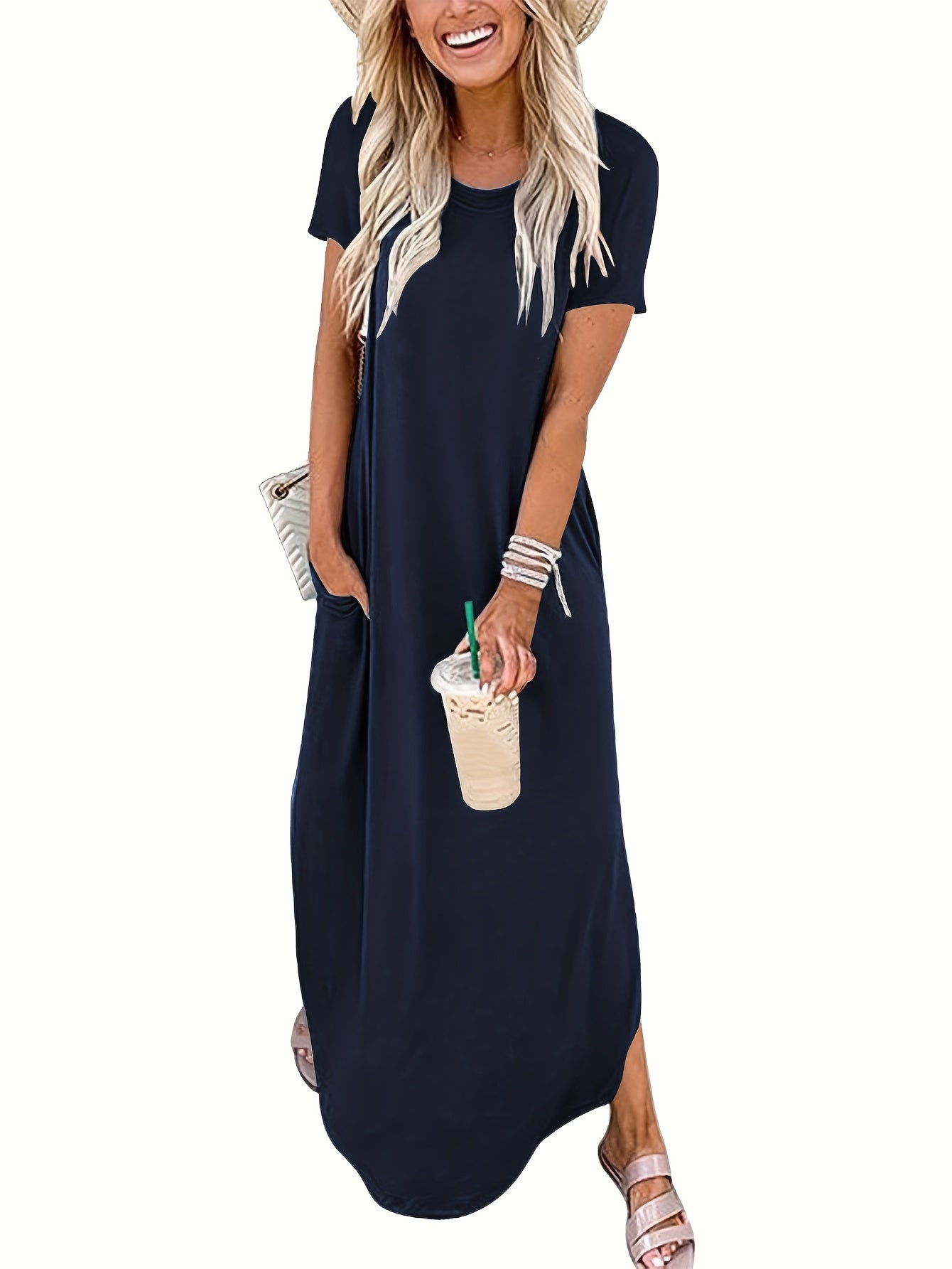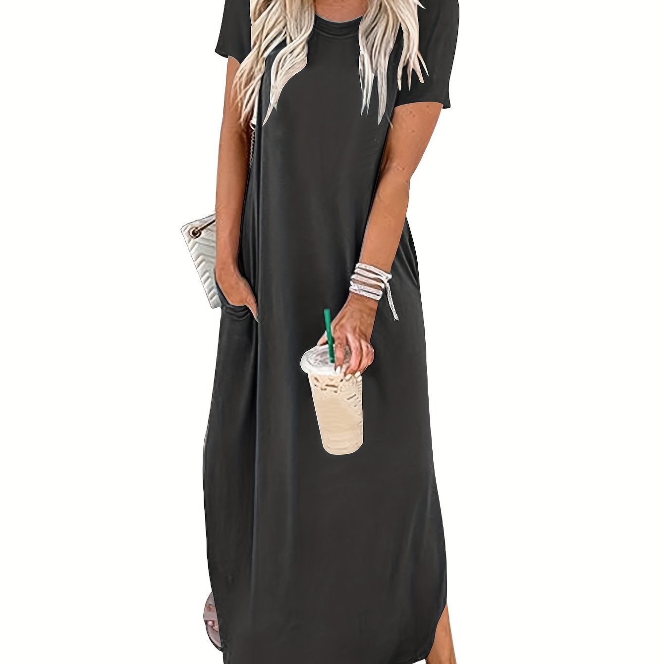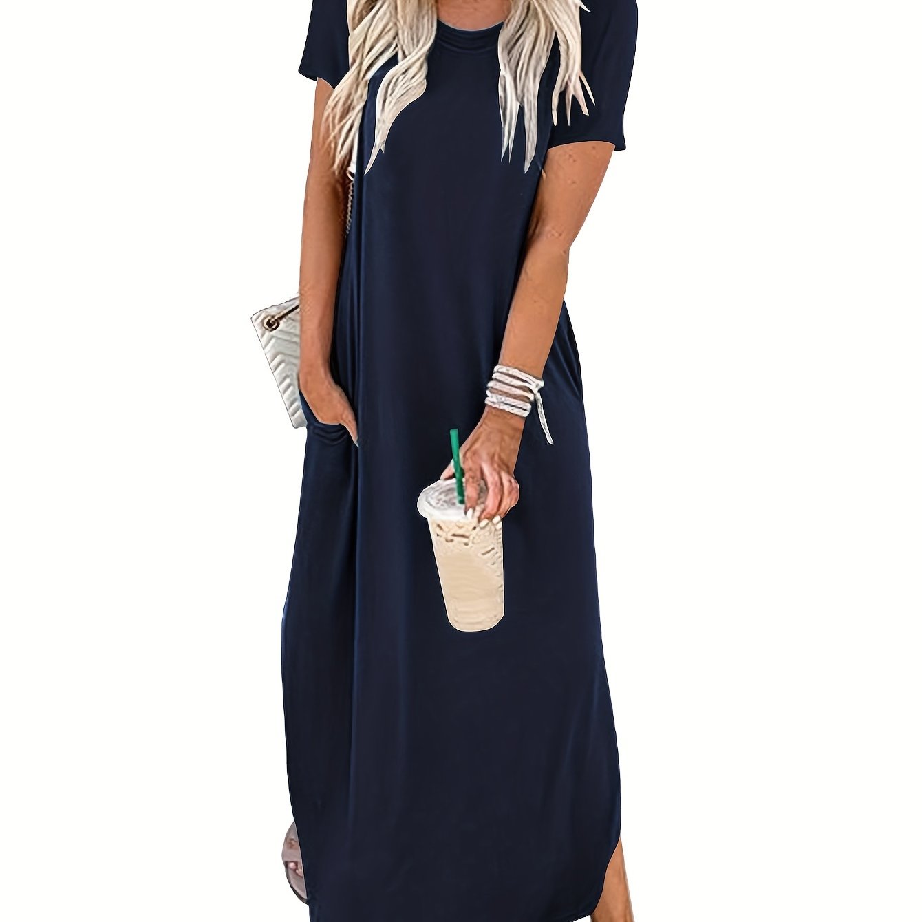 Schlicht, stilvoll und doch voller Ausdruck – dieses einfarbige Maxikleid mit elegant geschwungenem Saum begleitet dich mühelos durch Frühling und Sommer. Der klassische Rundhalsausschnitt bringt Ruhe in den Look, während der fließende Schnitt deine natürliche Schönheit betont. Egal ob Stadtspaziergang, Urlaubstag oder Gartenfest – dieses Kleid passt immer und lässt dich dabei strahlen.