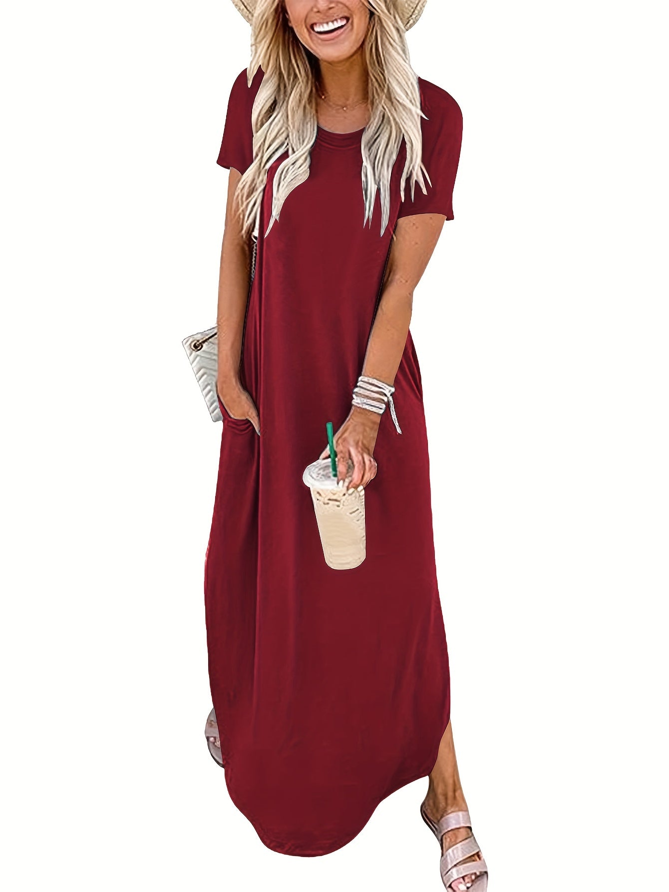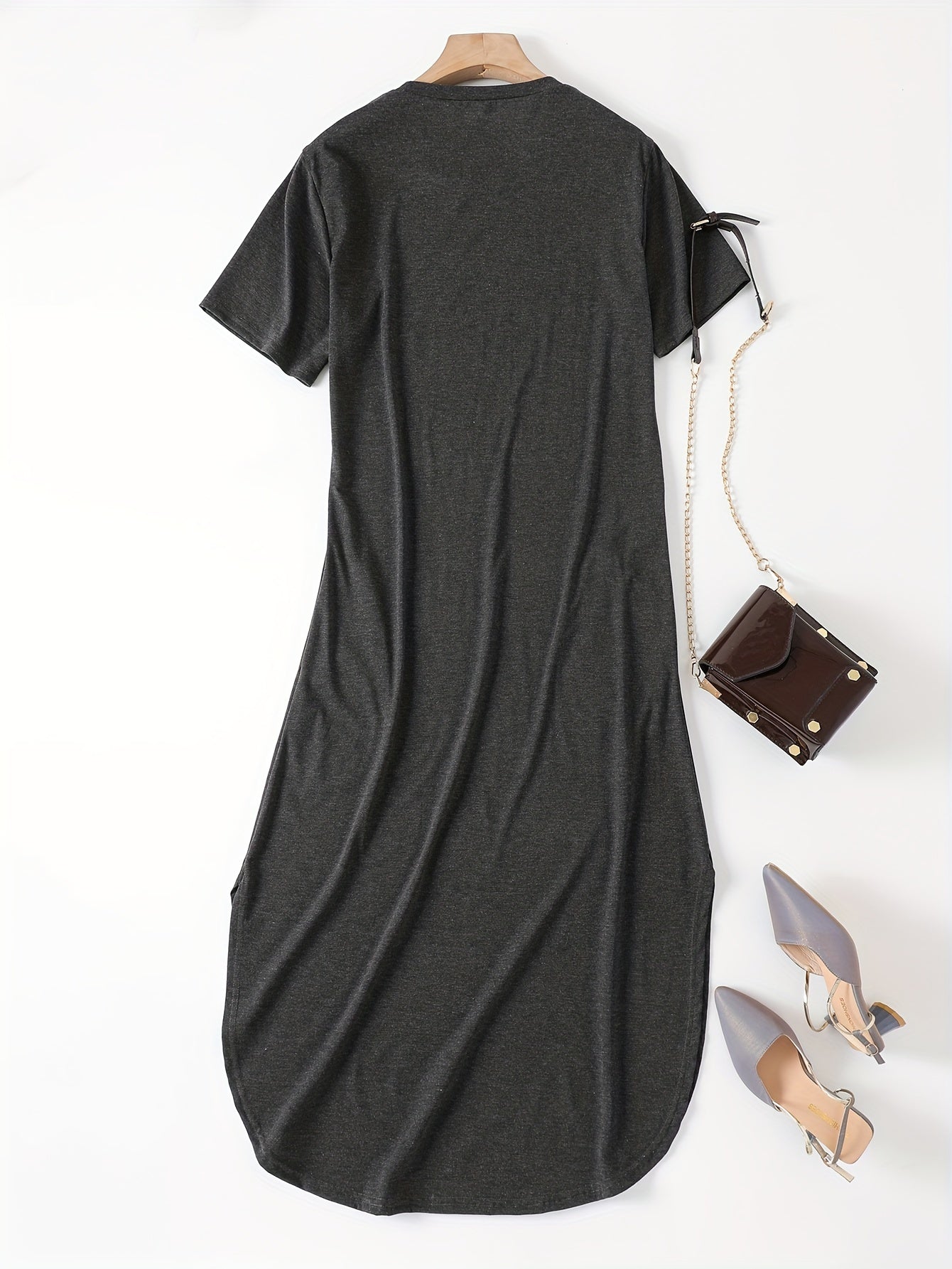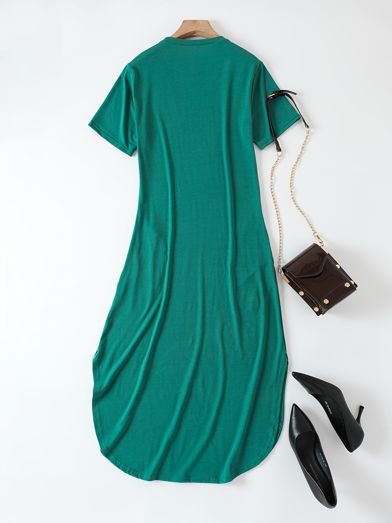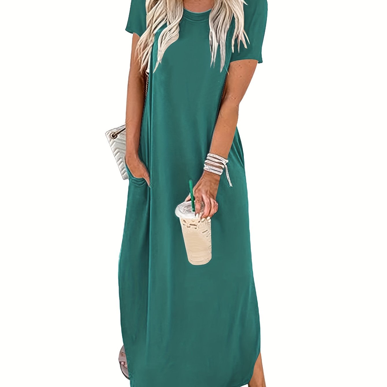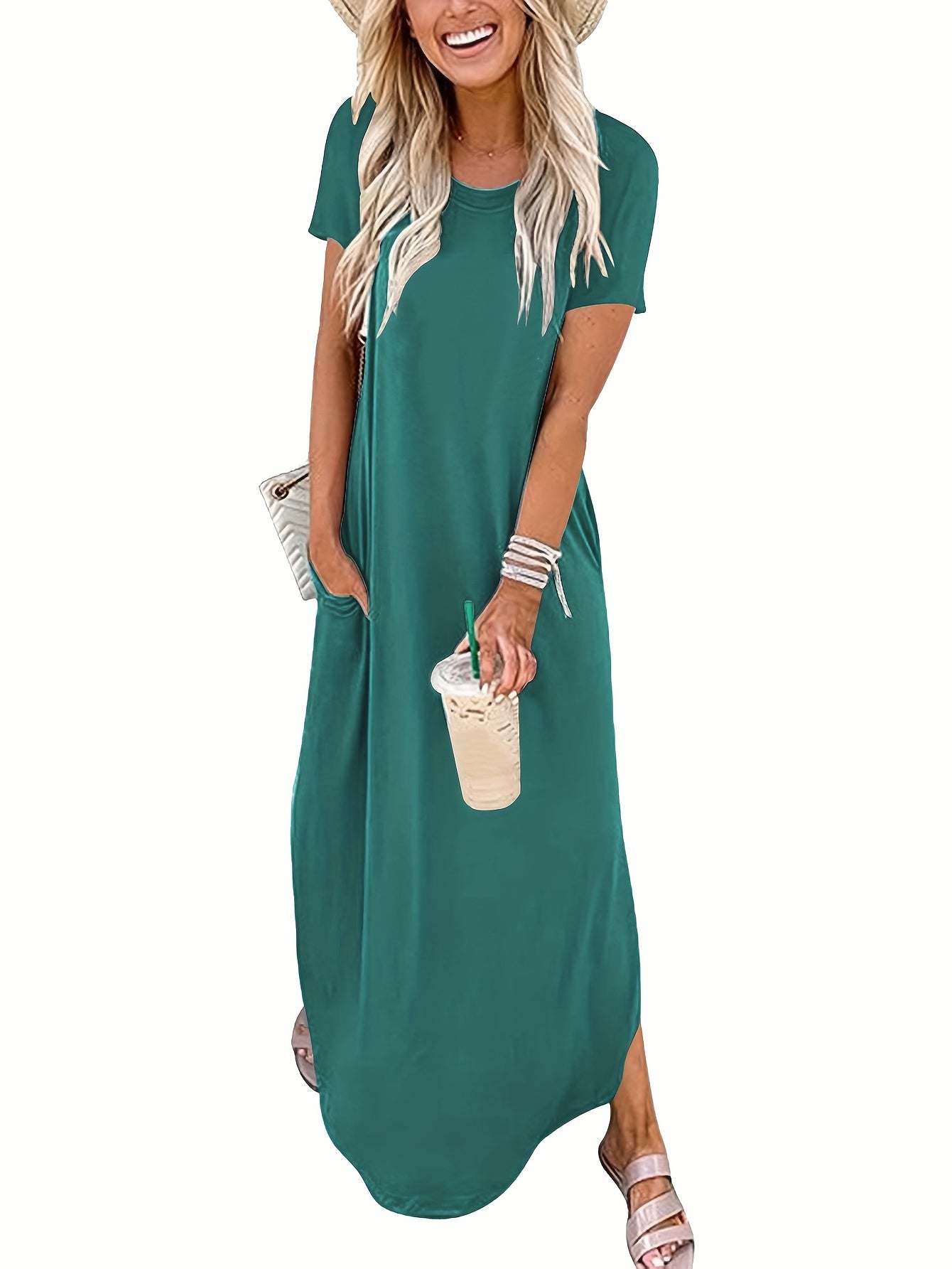 Schlicht, stilvoll und doch voller Ausdruck – dieses einfarbige Maxikleid mit elegant geschwungenem Saum begleitet dich mühelos durch Frühling und Sommer. Der klassische Rundhalsausschnitt bringt Ruhe in den Look, während der fließende Schnitt deine natürliche Schönheit betont. Egal ob Stadtspaziergang, Urlaubstag oder Gartenfest – dieses Kleid passt immer und lässt dich dabei strahlen.