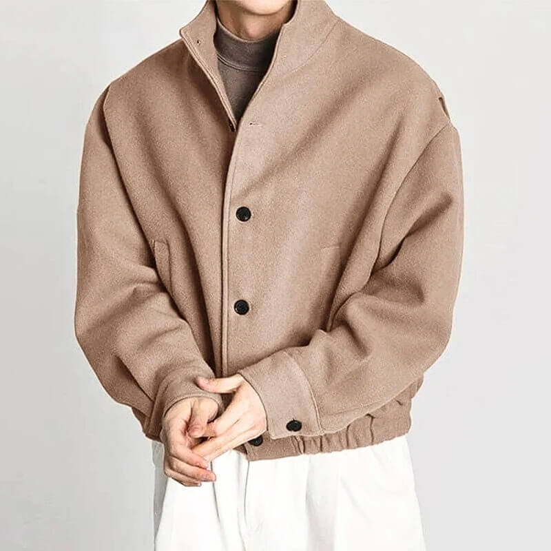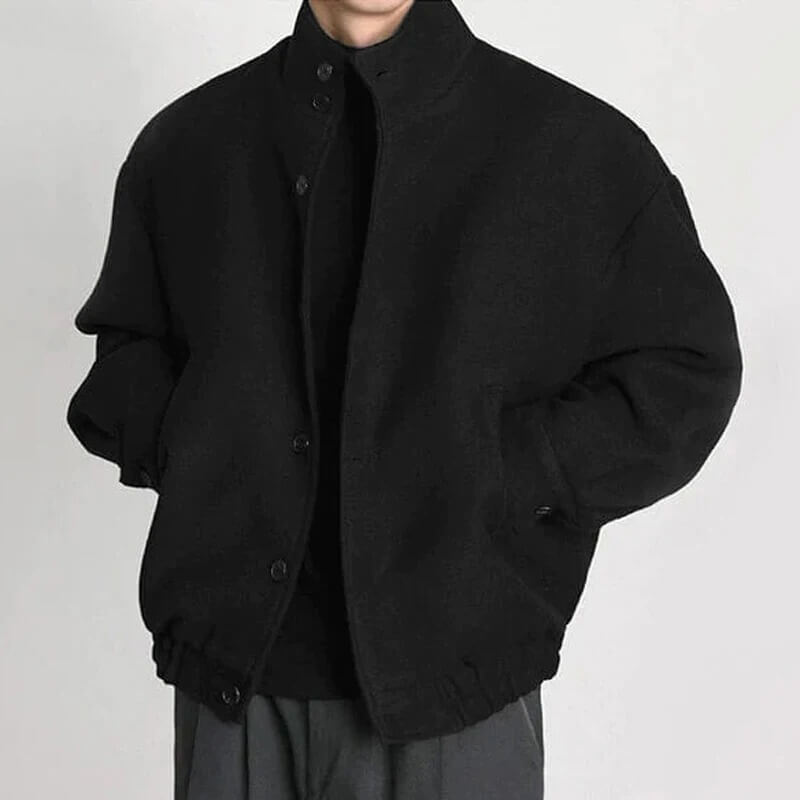 Setzen Sie ein Statement mit dieser übergroßen Bomberjacke, der Finn Bomberjacke, mit einem schlanken, strukturierten Stehkragen für einen kühnen, modernen Look.